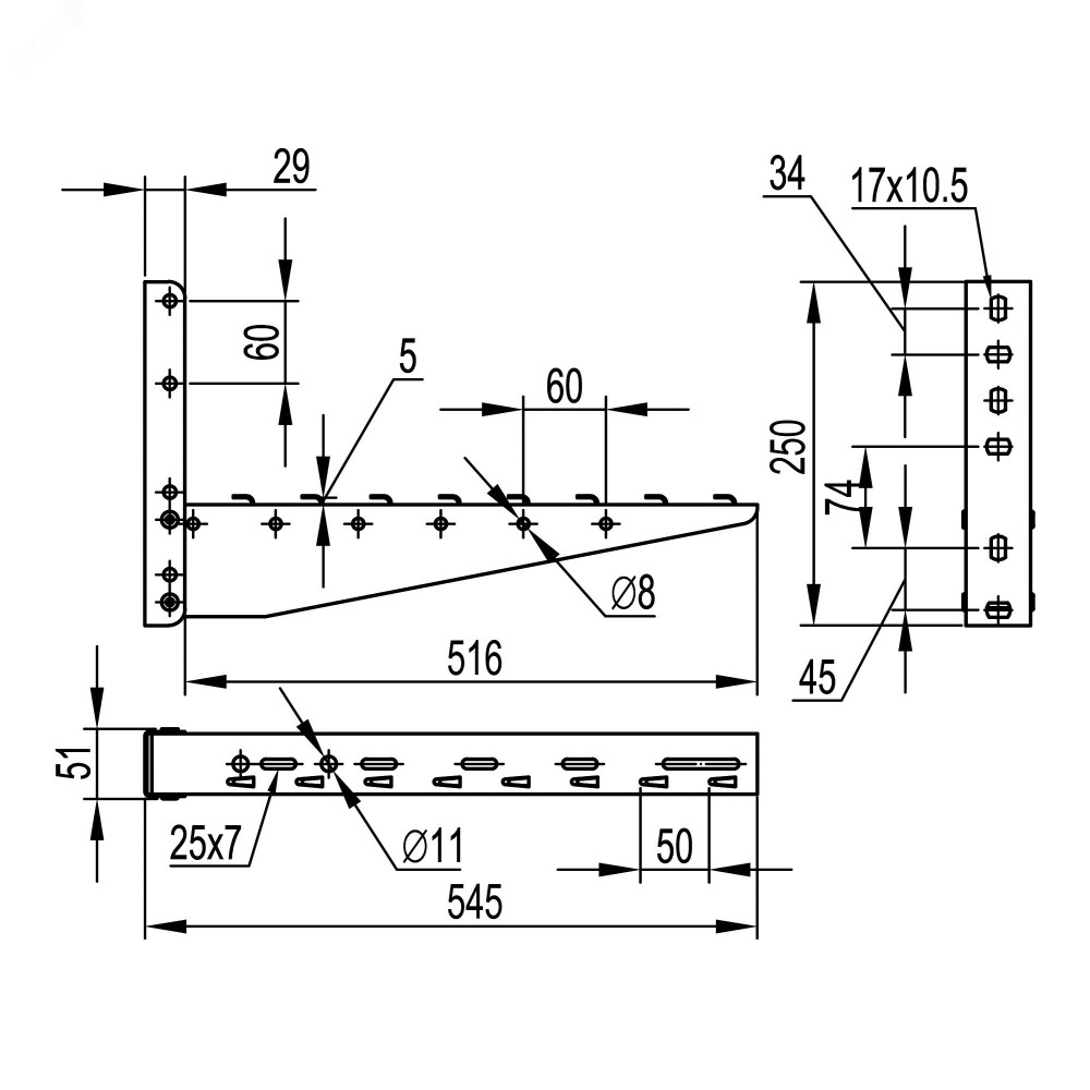 Консоль с опорой ML основание 500мм FC33834, Аксессуар к кабеленесущей системе