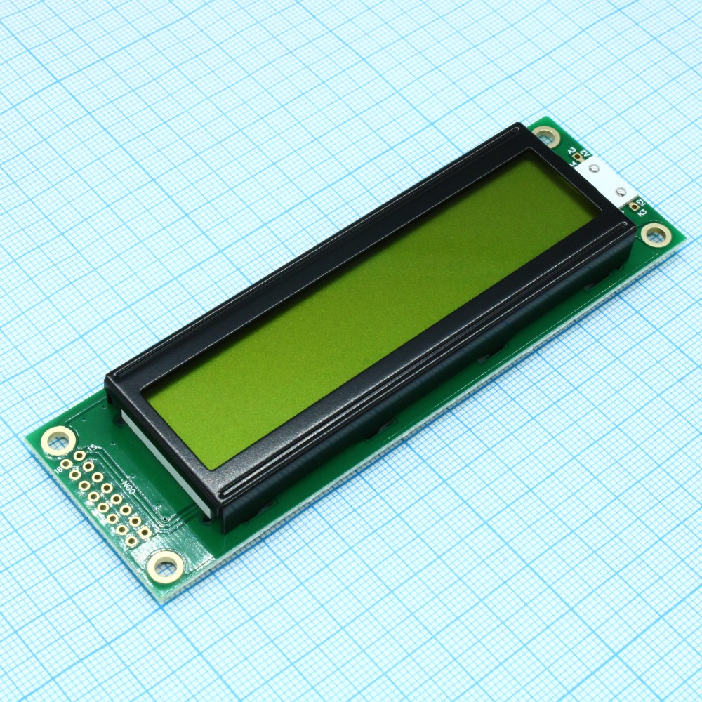 ЖКИ знакосинтезирующий 20 x 2, STN Желто-зеленый Позитивный/прозрачно-отражающий светодиодная подсветка желто-зеленая размеры 116x37 мм, видимая область 85x18.6 мм, -20...70°C, контактные площадки 2 ряда слева 16 выводов