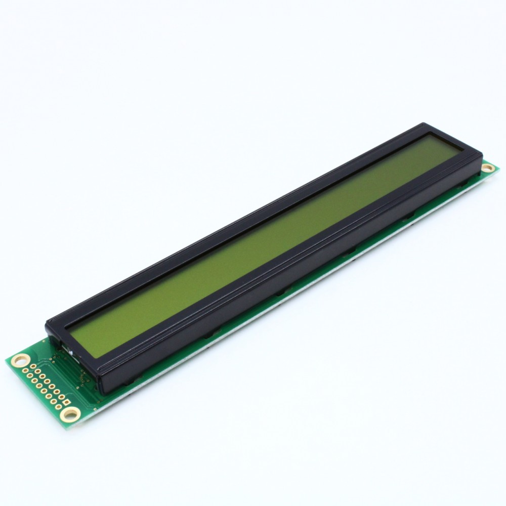 ЖКИ знакосинтезирующий 40 x 2, STN Желто-зеленый Позитивный/прозрачно-отражающий светодиодная подсветка желто-зеленая размеры 182x33.5 мм, видимая область 154.5x16.5 мм, -20...70°C, контактные площадки слева 2 ряда 16 выводов