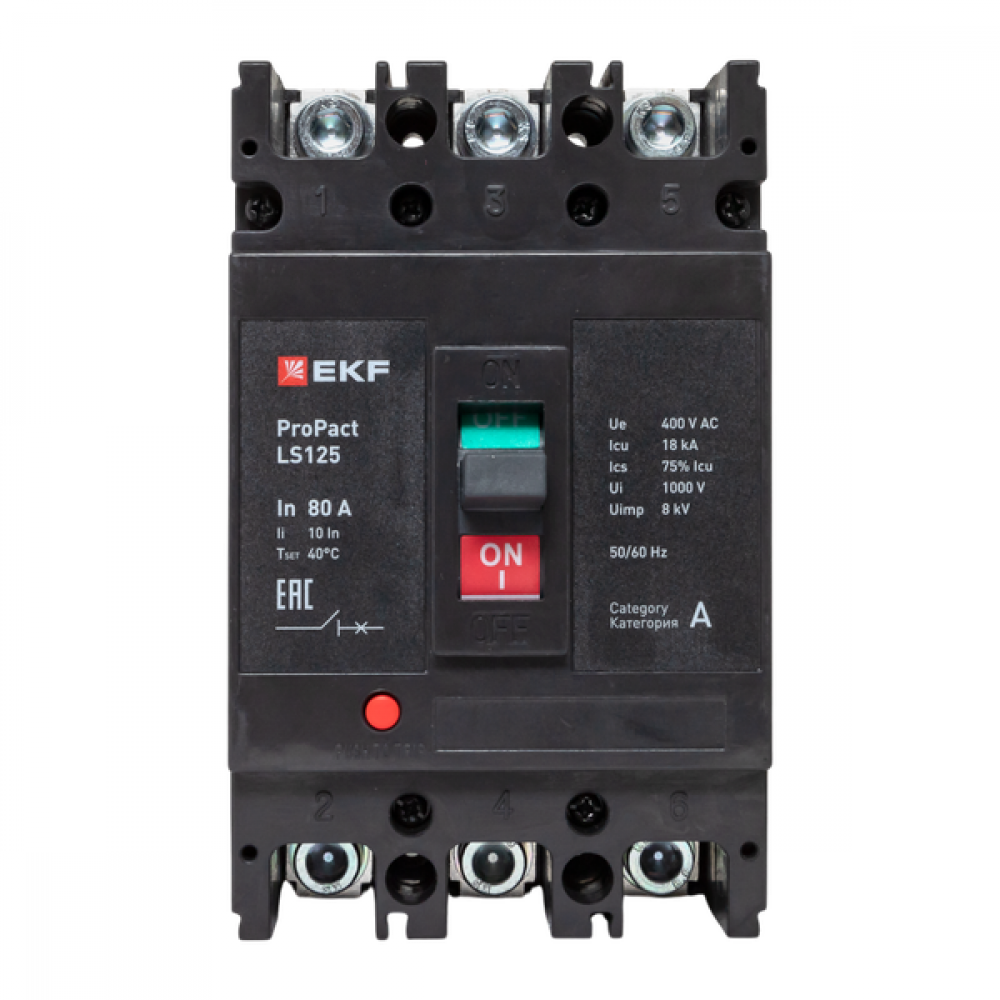 Автоматический выключатель LS125 18кА 3P 80А ProPact EKF, Выключатель автоматический силовой