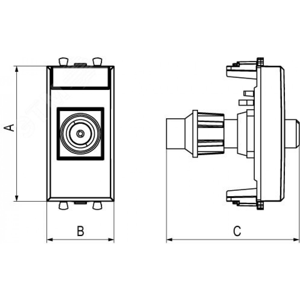 Розетка TV оконечная модульная. Назначение- для монтажа в системы 'In-liner Front' и 'In-liner Aero' при помощи рамок-суппортов и каркасов 'Avanti' (код 4400912 и т.д.), подключения телевизионного кабеля. Характеристики- диапазон рабочих частот 4–2400 МГц, затухание