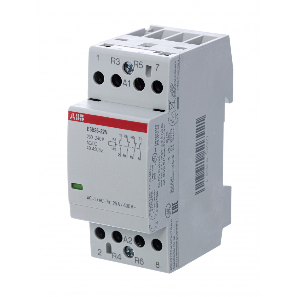 Контактор ESB20-11N-06 модульный (20А АС-1, 1НО+1НЗ), катушка 230В AC/DC 1SBE121111R0611 →