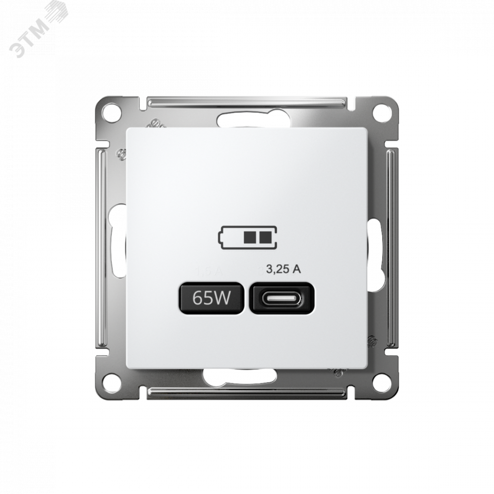 Розетка Systeme Electric серии AtlasDesign (цвет белый) USB с разъемом типа C высокоскоростная. Самая современная USB-зарядка позволяет заряжать ноутбук, а также смартфоны последнего поколения, которые поддерживают функцию быстрой зарядки. Мощность, тип-С - 65Вт. Поддерживает современные протоколы быстрой зарядки QC, PD, последних версий. Лицевые детали из качественного ABS-пластика, устойчивого к царапинам и УФ-излучению.