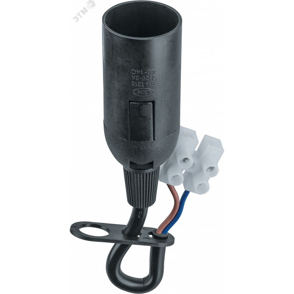 Описание Патрон подвесной Е14 с проводом и клемной колодкой пластик черный 20606