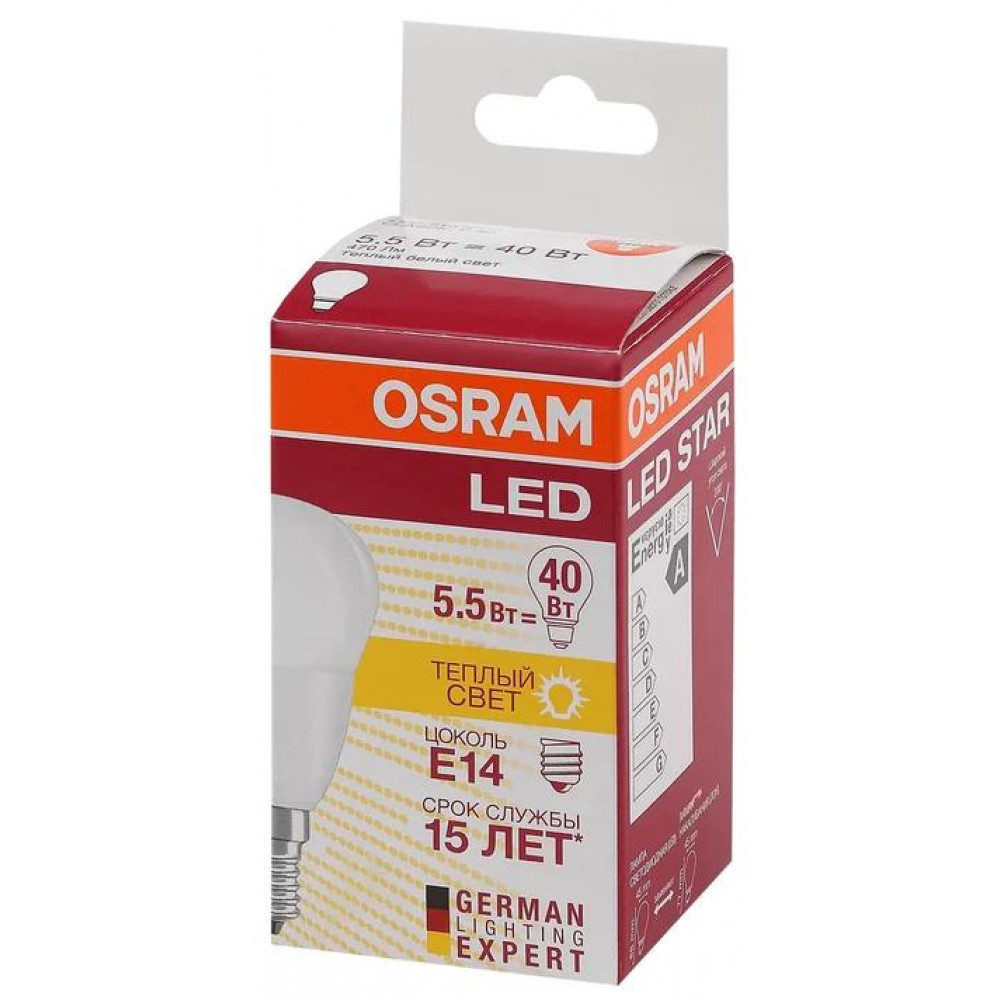 Лампа светодиодная LED Star Classic P 40 5W/827 5Вт шар матовая 2700К тепл. бел. E14 470лм 220-240В пластик. OSRAM 4052899971615, Лампа светодиодная