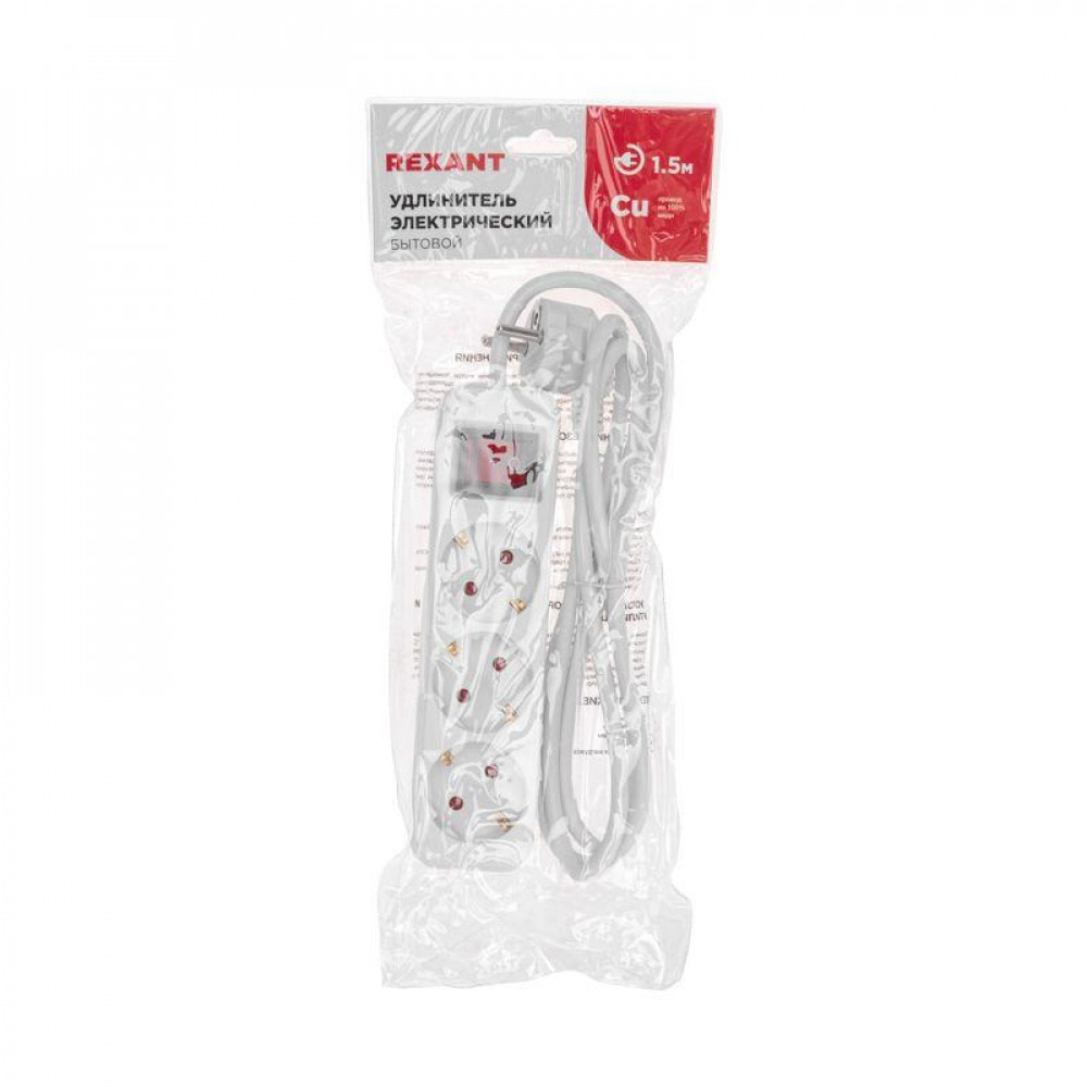 Удлинитель 3х1.5м с заземл. STANDARD 3х1кв.мм с выкл. бел. Rexant 13-4012, Удлинитель, сетевой фильтр
