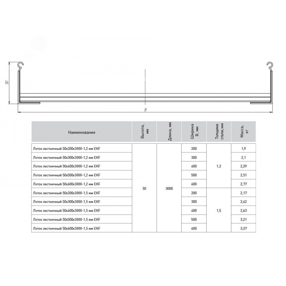 Описание Лоток лестничный 50х200х3000-1,5 мм EKF