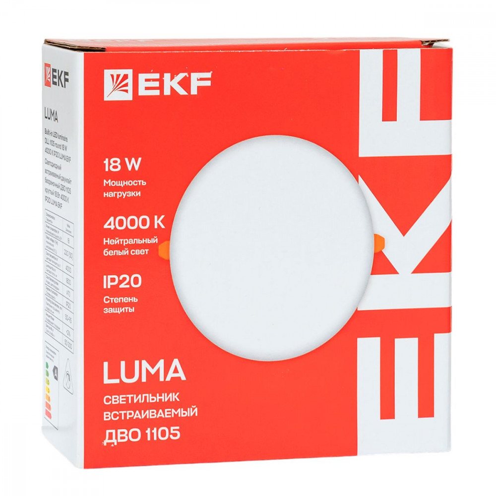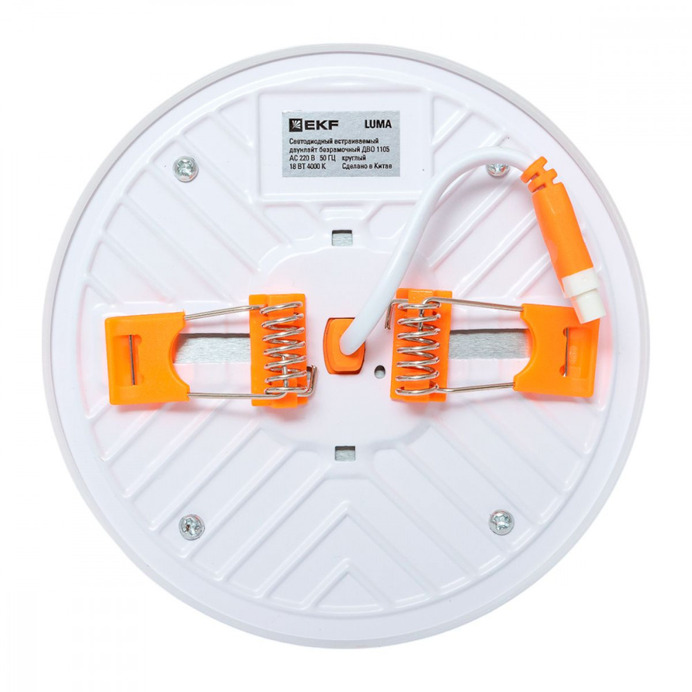 Описание Светодиодный встраиваемый даунлайт безрамочный ДВО 1105 круглый 18Вт 4000K IP20 LUMA EKF