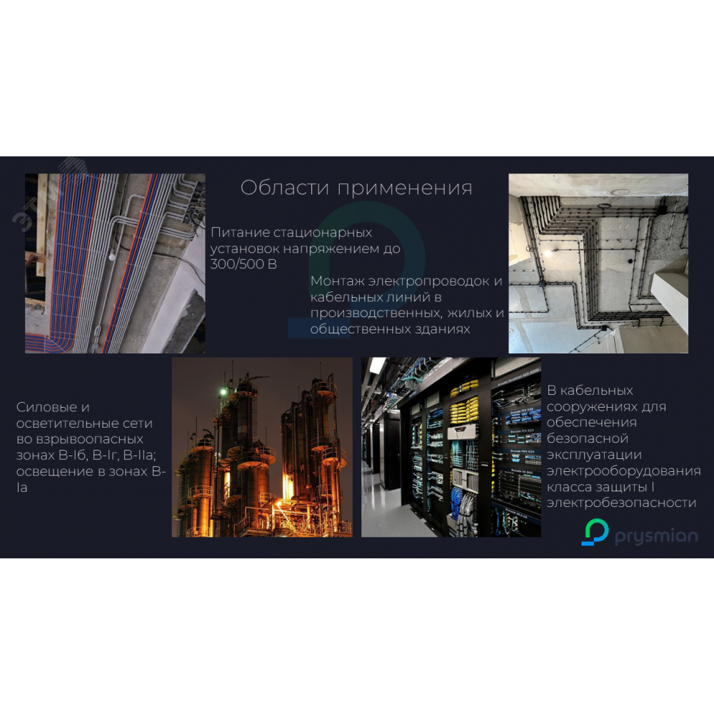 Кабель медный силовой с медными жилами с изоляцией и оболочкой из поливинилхлоридного пластиката. Предназначен для передачи и распределения электрической энергии в стационарных установках на номинальное переменное напряжение до 300/500 В. Кабель предназначен для монтажа электропроводок и кабельных линий в производственных, жилыхи общественных зданиях, сооружениях, а также в кабельных сооружениях для обеспечения безопасной эксплуатации электрооборудования класса защиты I электробезопасности. Кабель может применяться для прокладки силовых и осветительных сетей во взрывоопасных зонах классов BI б, BI г,ВII а, а также для осветительных сетей во взрывоопасных зонах класса BI а.