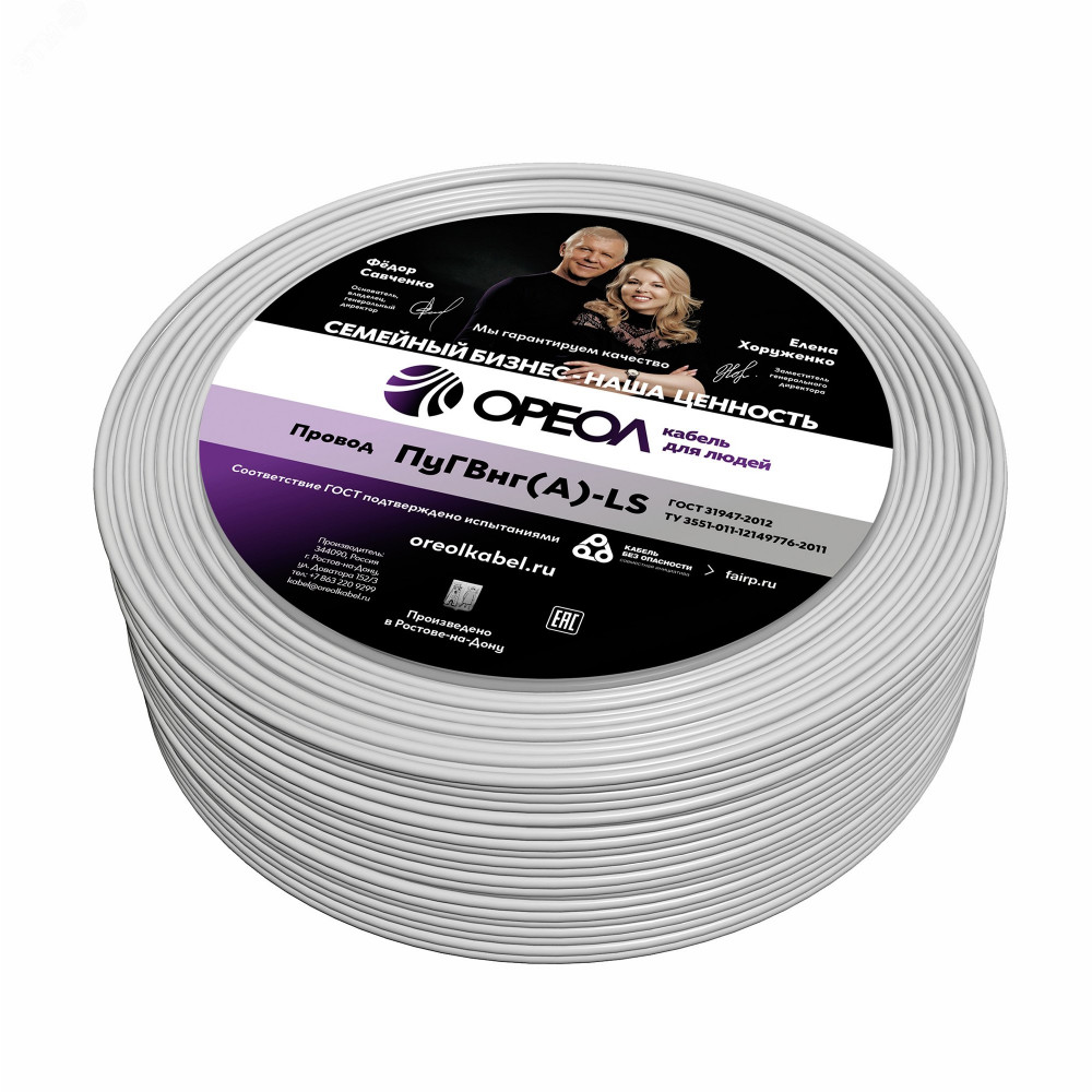 Провод силовой ПуГВ нг(А) LS 4 белый ТРТС 00000062185, Кабель и провод силовой гибкий