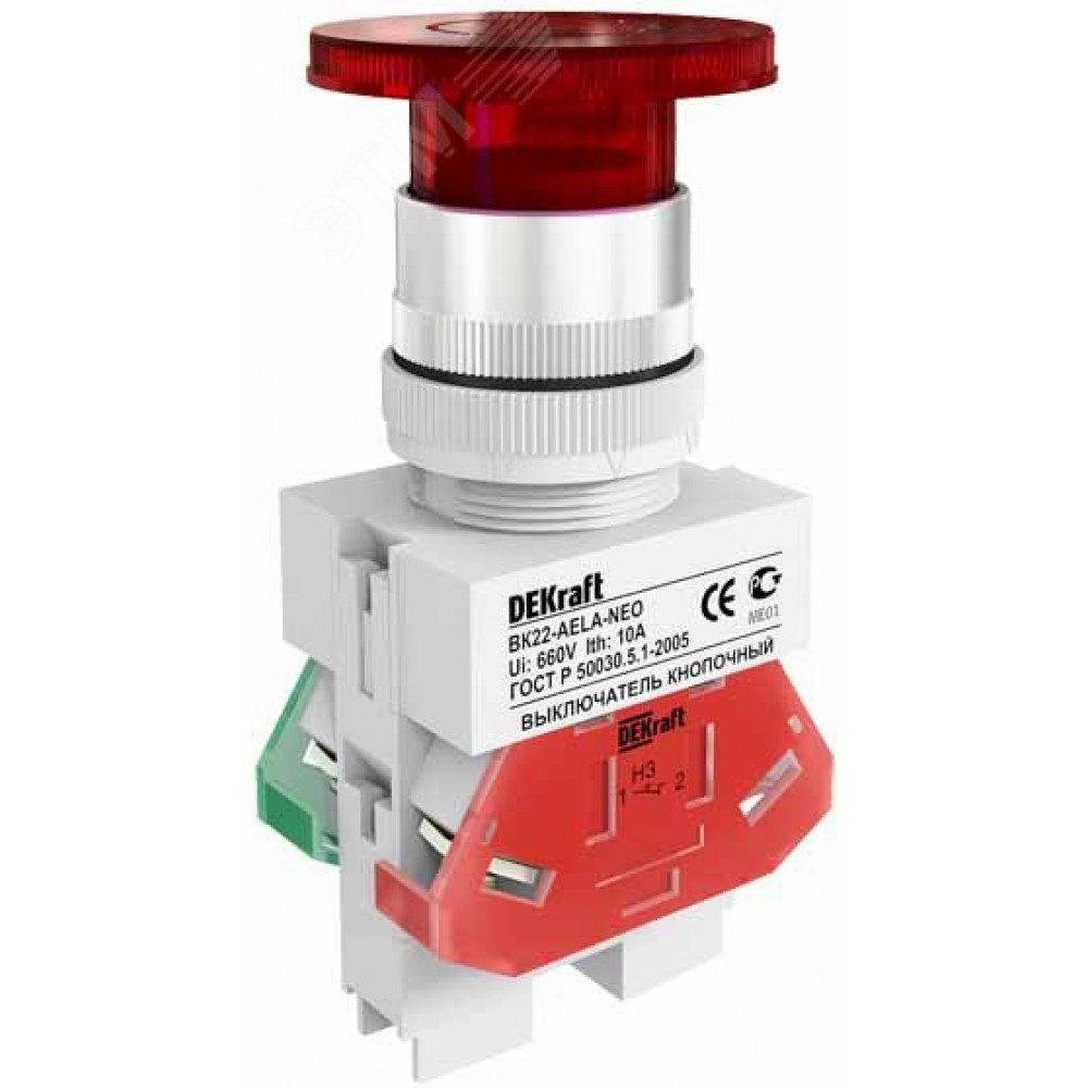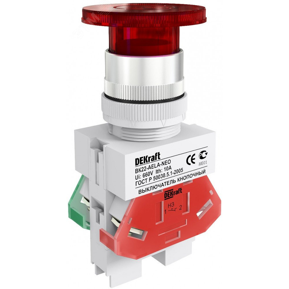 Описание Dekraft Выключатель кноп. грибок AELA D22 КРАСНЫЙ неон 220В ВК-22