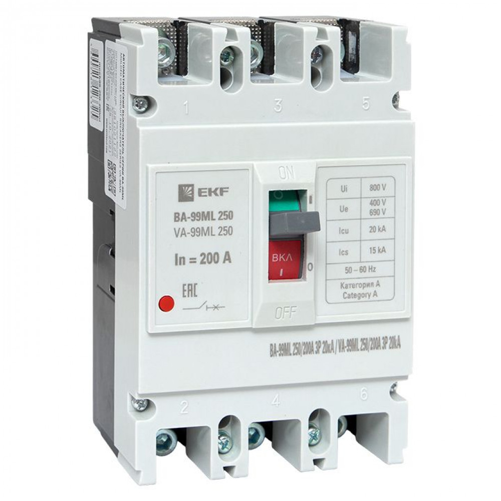 Описание EKF Basic Автоматический выключатель ВА-99МL 250/200А 3P 20кА