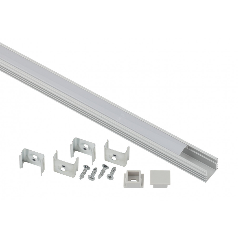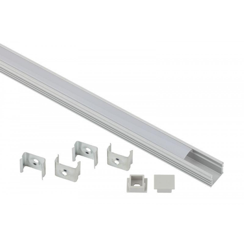 Комплект предназначен для установки светодиодных лент. За счёт отведения тепла работающих светодиодной увеличивает срок службы ленты. Анодированное покрытие обеспечивает устойчивость к воздействиям окружающей среды, обеспечивает гладкость и легко окрашивается. Эстетично смотрится в интерьере, обеспечивает механическую защиту. В комплекте накладной анодированный профиль CAB261 16х12мм, 2м, защитный экран 2 м, 4 крепления и 2 заглушки.