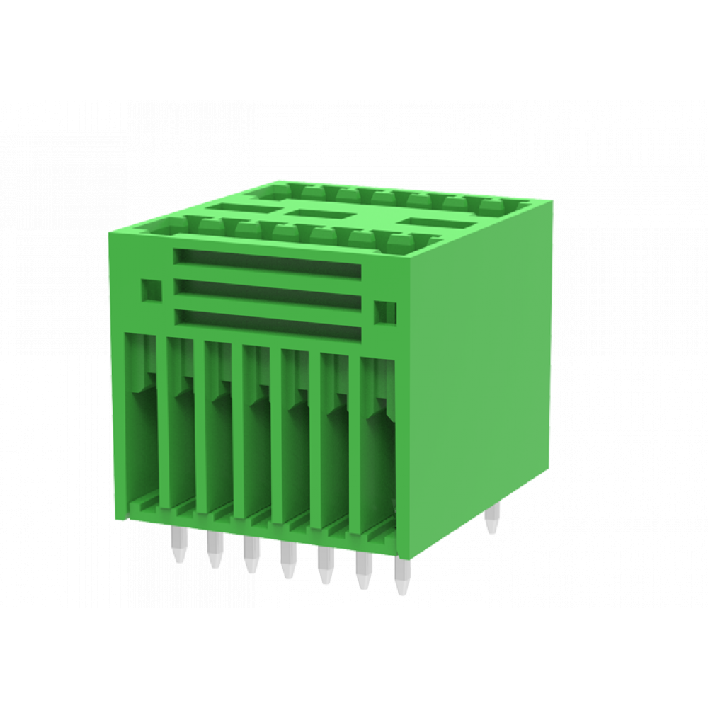 Вилочный разъем, 2 этажа, вертикальный, на плату, шаг: 2.5 мм, 2x2 полюса, фиксация на плате пайкой, исполнение: стандартное, 160V, 4A, цвет: зеленый