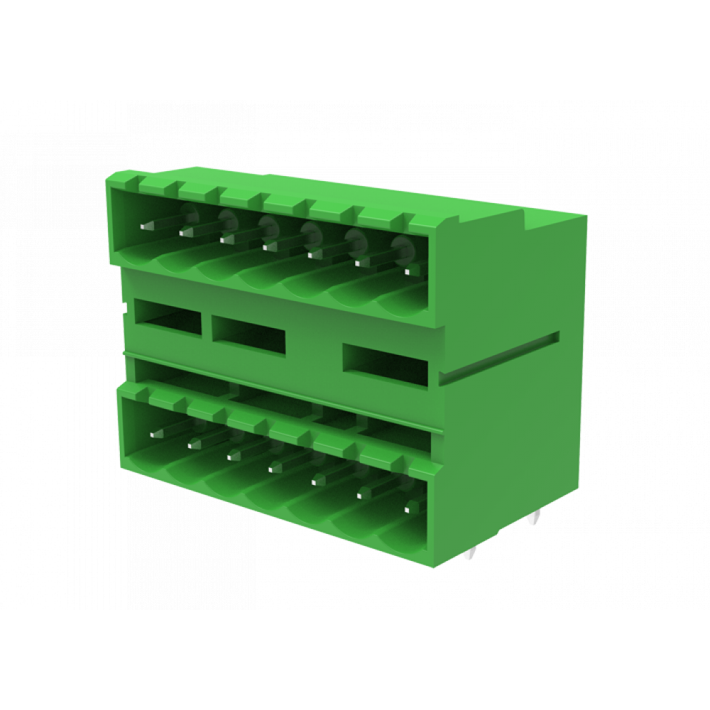 Вилочный разъем на плату MC-DPA5.08H02-0002, Вилочный разъем, 2 этажа, горизонтальный, на плату, шаг: 5.08 мм, 2x2 полюса, фиксация на плате пайкой, исполнение: стандартное, 320V, 10A, цвет: зеленый