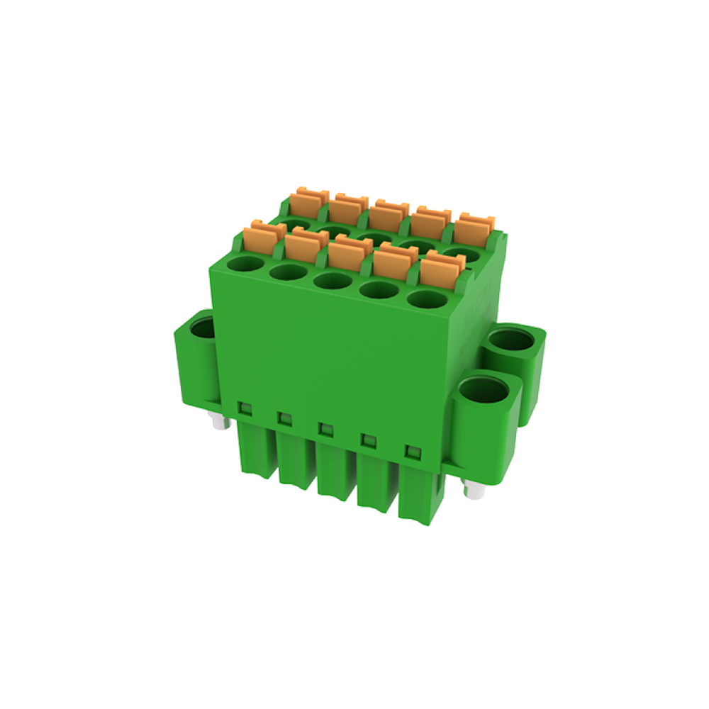 Розеточный разъем, прямой, 2 этажа, на кабель, шаг: 3.81 мм, 4x2 полюса, фиксация провода Push-in, исполнение: с монтажными фланцами, 160V, 8A, цвет: зеленый