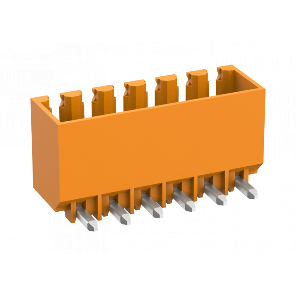 Вилочный разъем на плату MC-PA3.5H03-OG-WD, Вилочный разъем, горизонтальный, на плату, шаг: 3.5 мм, 3 полюса, фиксация на плате пайкой, исполнение: увеличенная мощность, 160V, 10A, цвет: оранжевый