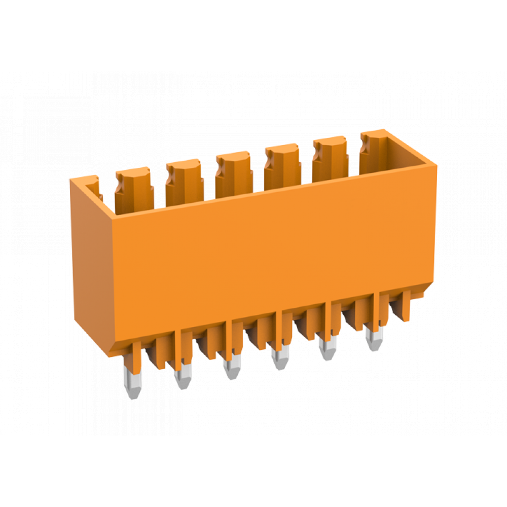 Доставка Вилочный разъем на плату MC-PA3.5V02-OG-WD , Вилочный разъем, вертикальный, на плату, шаг: 3.5 мм, 2 полюса, фиксация на плате пайкой, исполнение: увеличенная мощность, 160V, 10A, цвет: оранжевый