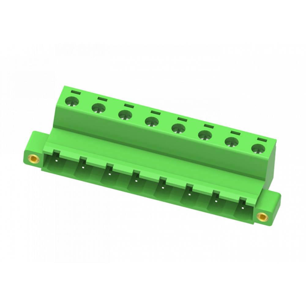 Вилочный разъем, прямой, на кабель, шаг: 7.62 мм, 24 полюса, фиксация провода винтовая, исполнение: с монтажными фланцами, 630V, 12A, цвет: зеленый