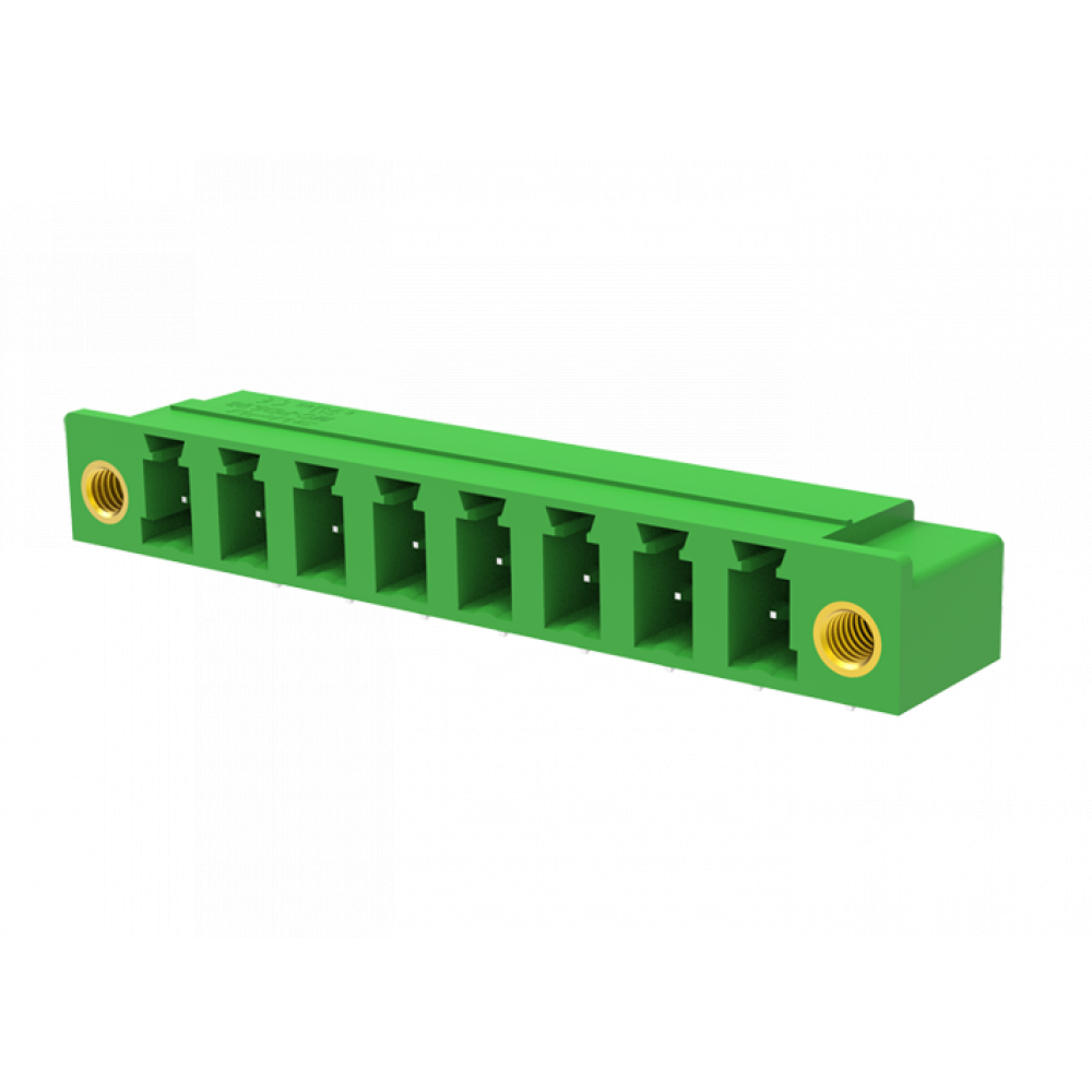 Вилочный разъем на плату MC-PD5.08H17-I-0001, Вилочный разъем, горизонтальный, на плату, шаг: 5.08 мм, 17 полюсов, фиксация на плате пайкой, исполнение: с монтажными фланцами и дополнительным креплением на плате, 320V, 8A, цвет: зеленый