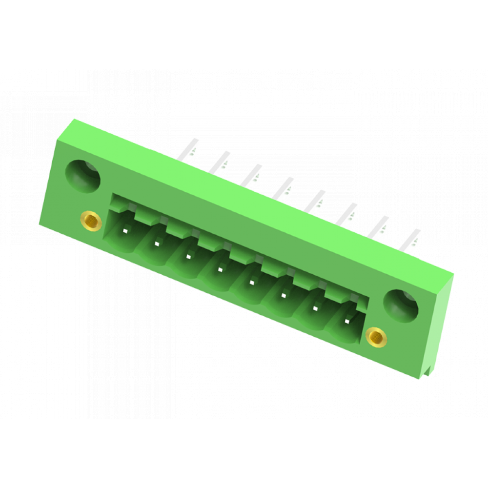 Доставка Вилочный разъем в панель MC-PE5.08V24-F , Вилочный разъем, в панель, шаг: 5.08 мм, 24 полюса, фиксация провода пайкой, исполнение: с монтажными фланцами, 320V, 12A, цвет: зеленый
