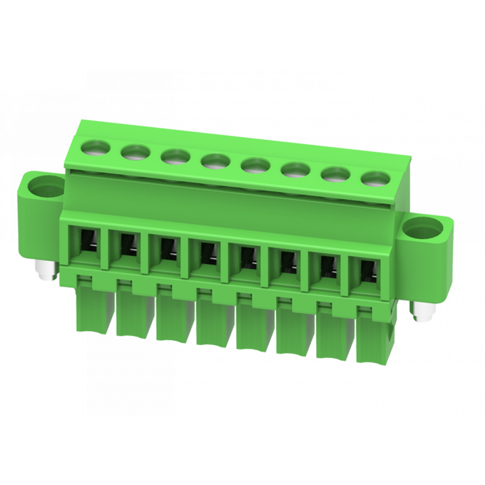 Розеточный разъем на кабель MC-RE3.81V24C-RK-0001, Розеточный разъем, угловой, на кабель, шаг: 3.81 мм, 24 полюса, фиксация провода винтовая, исполнение: с монтажными фланцами, 160V, 8A, цвет: зеленый