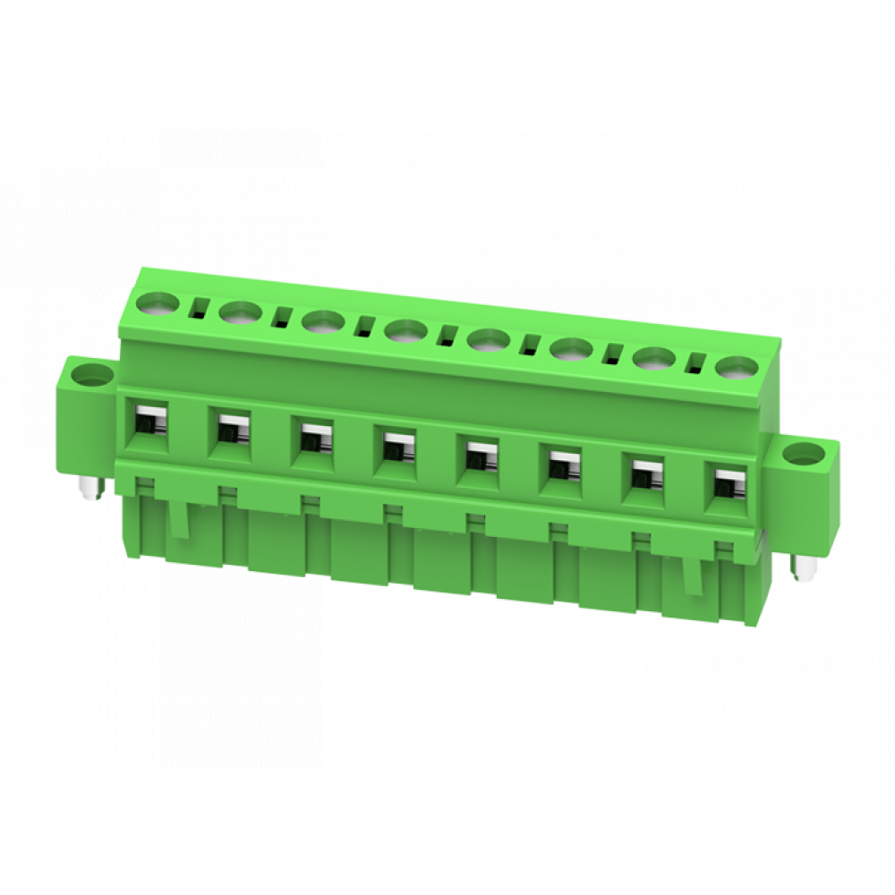 Розеточный разъем на кабель MC-RE7.62V02C-K-0001, Розеточный разъем, угловой, на кабель, шаг: 7.62 мм, 2 полюса, фиксация провода винтовая, исполнение: с монтажными фланцами, 630V, 18A, цвет: зеленый
