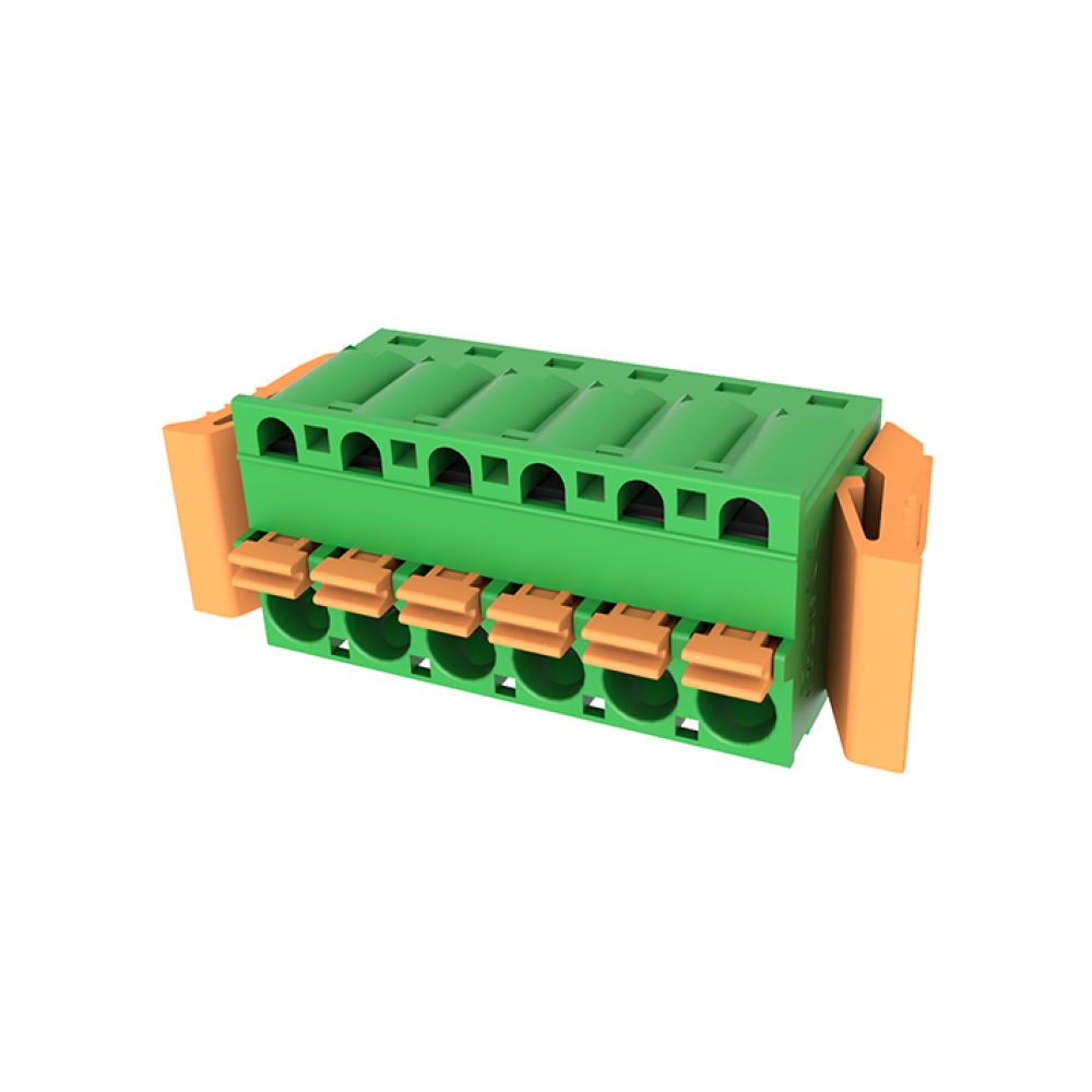 Розеточный разъем, прямой, на кабель, шаг: 5.0 мм, 10 полюсов, фиксация провода Push-in, исполнение: с защелками, 320V, 12A, цвет: зеленый