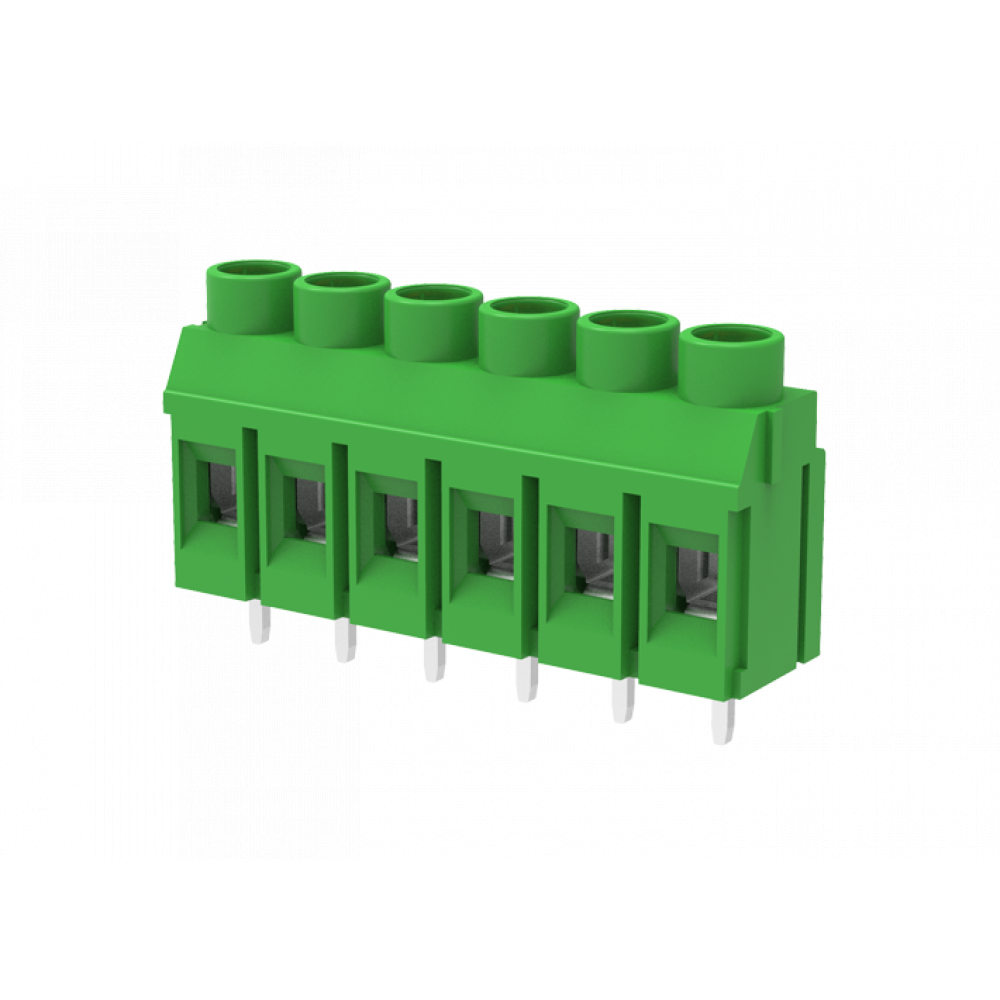 Клемма, горизонтальный подвод кабеля, на плату, шаг: 7.5 мм, 2 полюса, фиксация провода винтовая, исполнение: стандартное, 630V, 32A, цвет: зеленый
