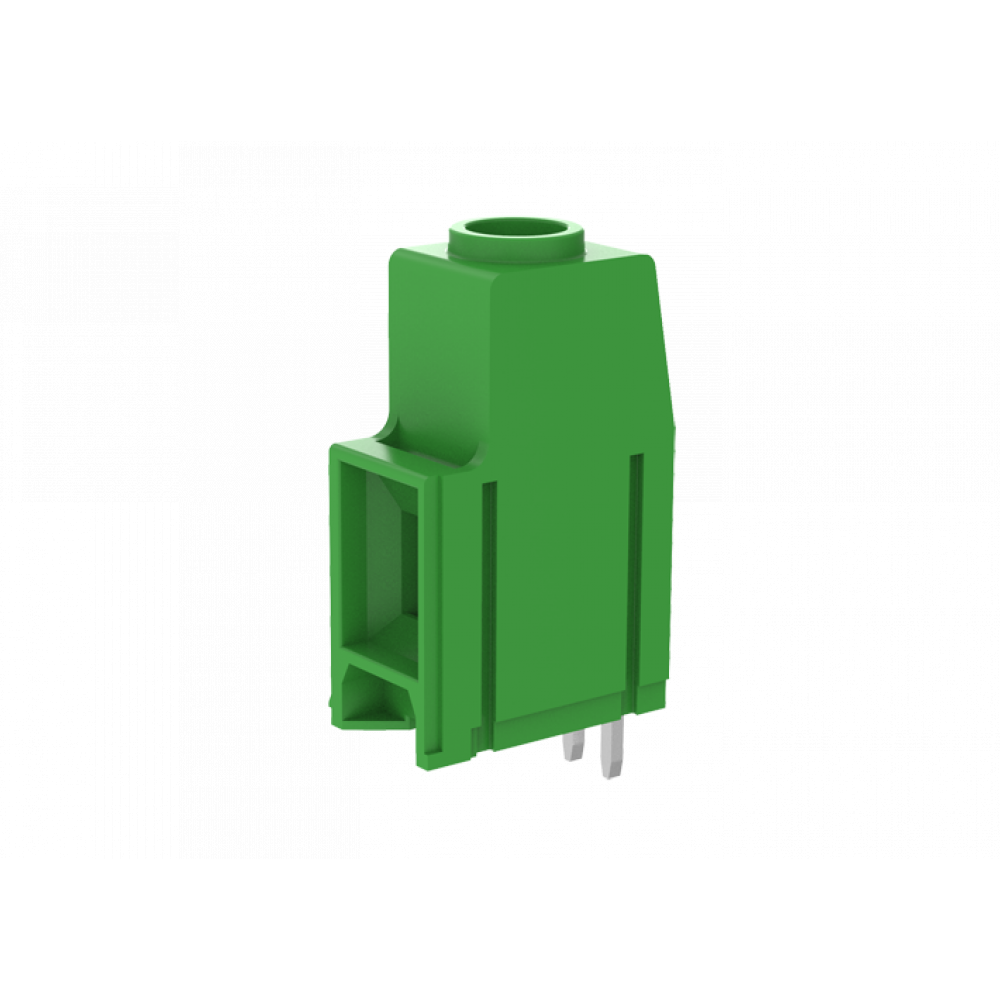 Клемма, горизонтальный подвод кабеля, на плату, шаг: 10.16 мм, 1 полюс, фиксация провода винтовая, исполнение: два вывода на полюс, 1000V, 76A, цвет: зеленый
