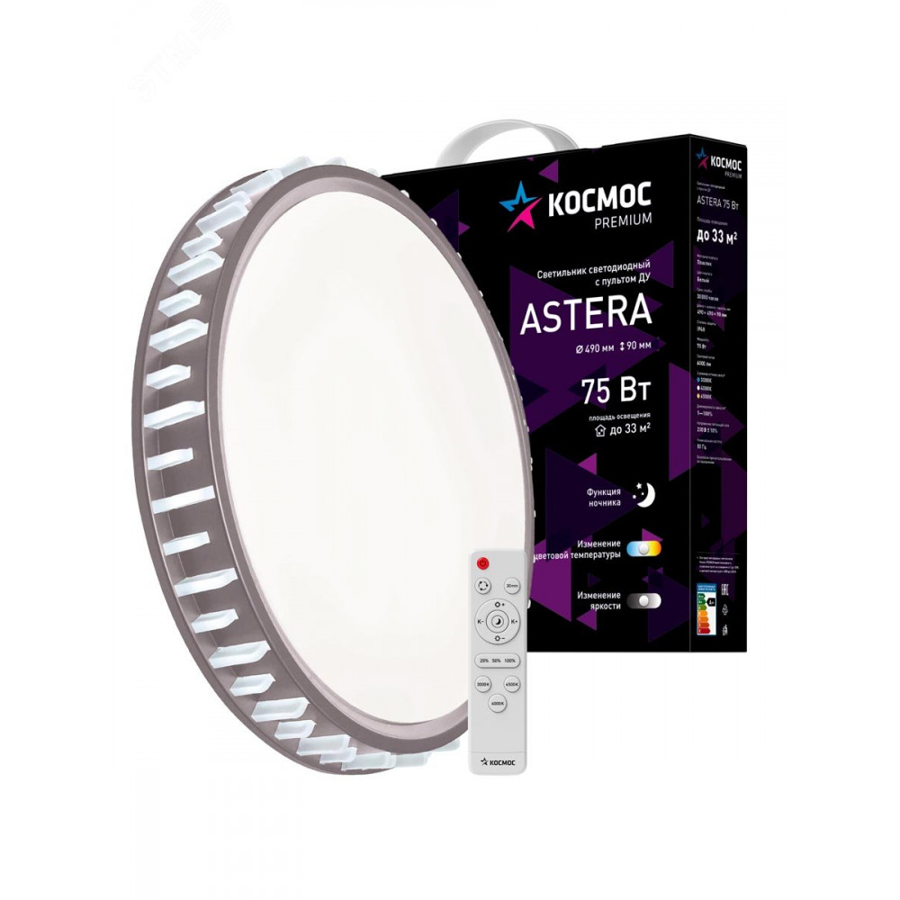 Описание Светильник светодиодный PREMIUM ASTERA 75Вт 230В 3000-6500К 6000лм IP40 490х90мм настенно-потолоч. управляемый с пультом ДУ КОСМОС KSAste75W