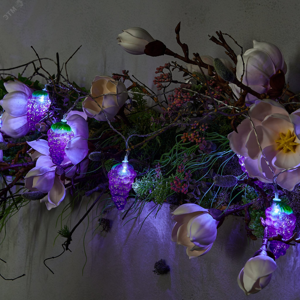Описание Гирлянда светодиодная на батарейках 2AA (не в/к) Виноград 4м 10 светодиодов Провод прозрачный ULD-S0400-010/STB/2AA WHITE IP20 GRAPES UL-00003392