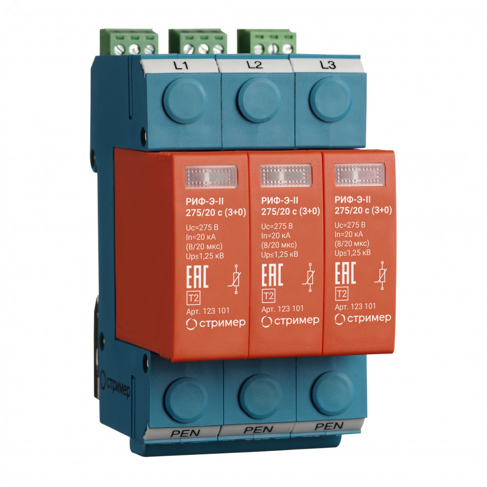 Устройство защиты от импульсных перенапряжений РИФ-Э-II 275/20 с (3+0) 123101, Ограничитель имп перенапряжения