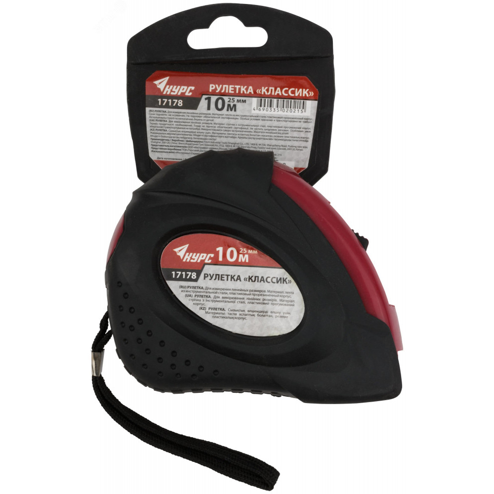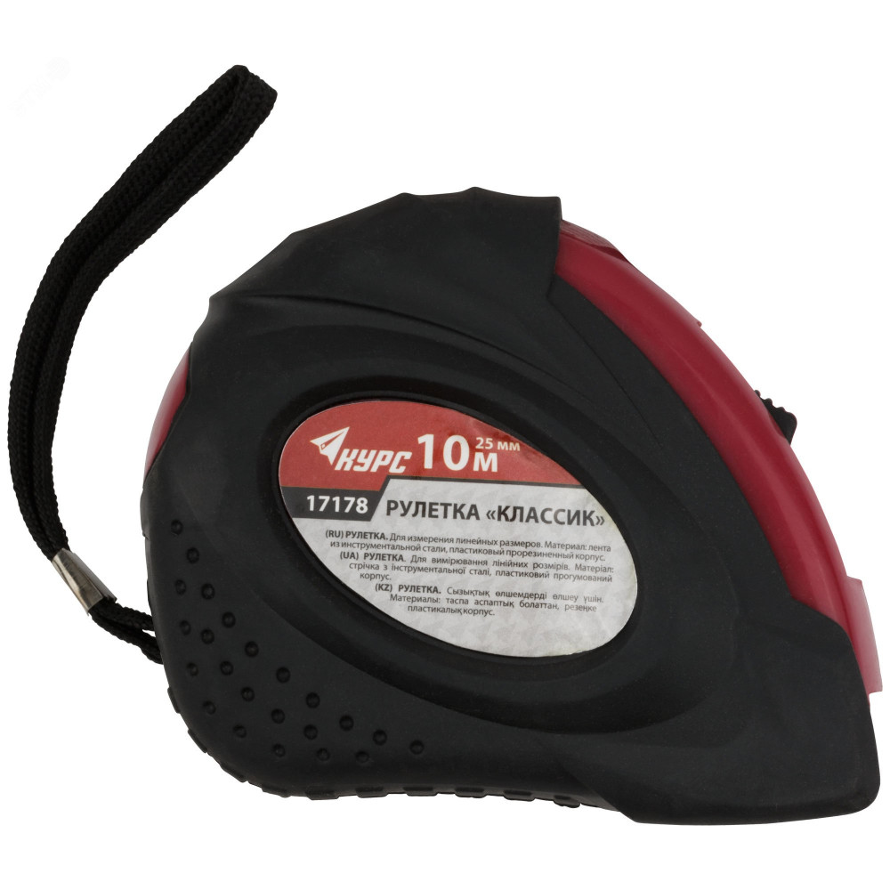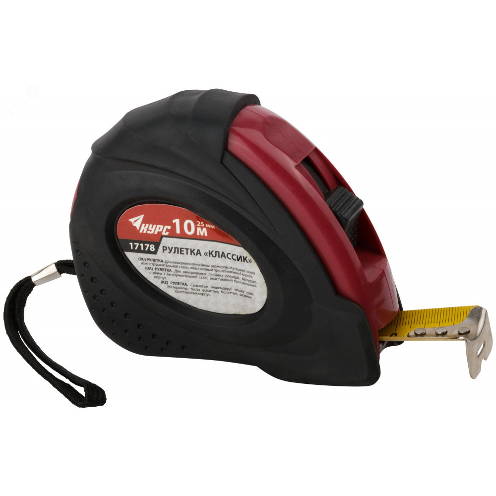 Описание Рулетка прорезиненный корпус ""Классик"" 10 м x 25 мм 17178