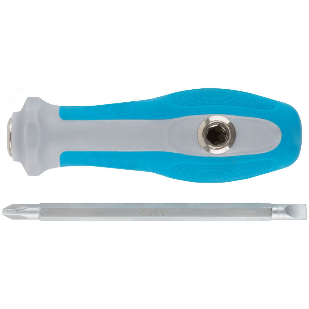 Отвертка с переставным жалом комбинированная, прямая и Т-обр., прорезиненная ручка, 6х120 мм PH2/SL6 56228М, Отвертка