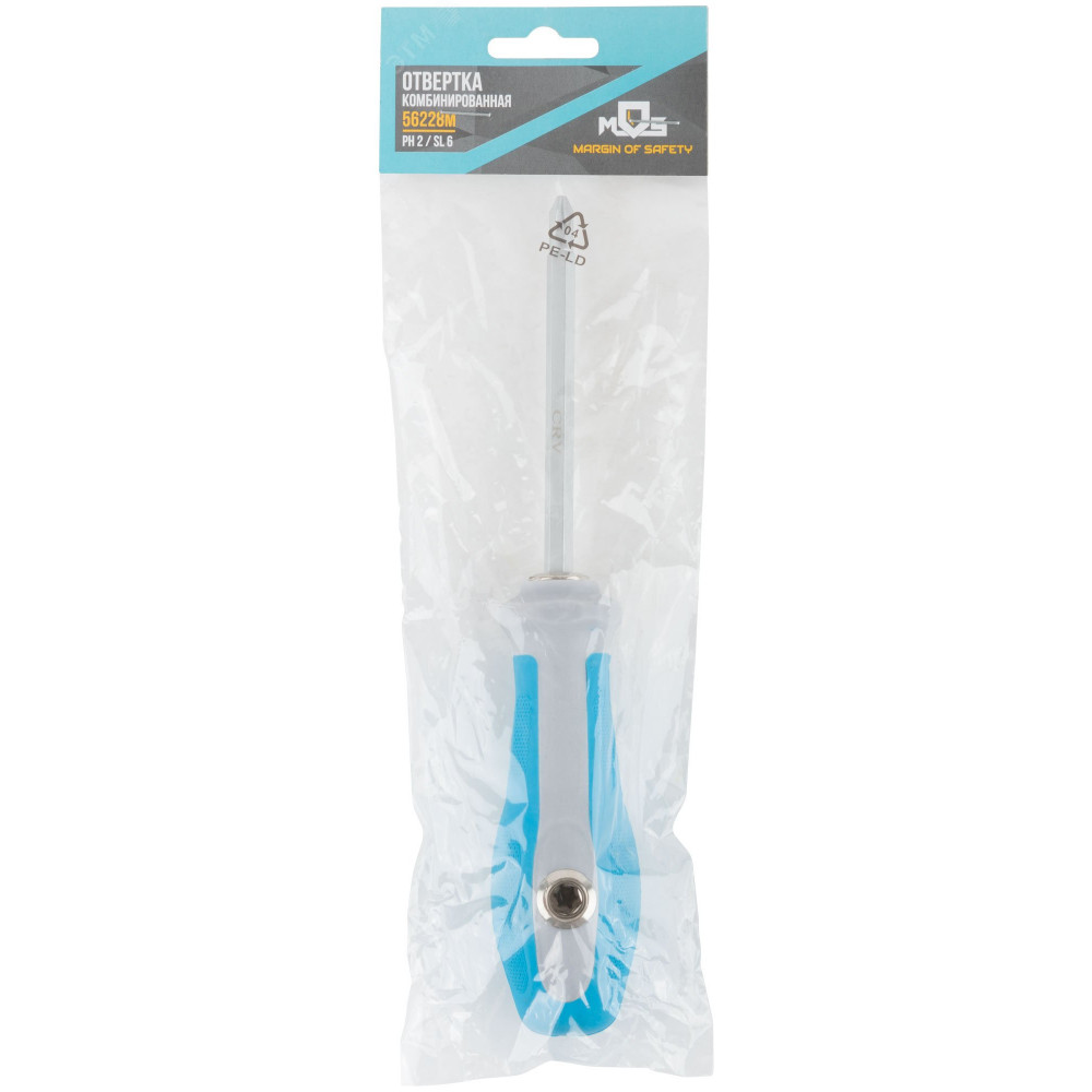 Описание Отвертка с переставным жалом комбинированная, прямая и Т-обр., прорезиненная ручка, 6х120 мм PH2/SL6 56228М