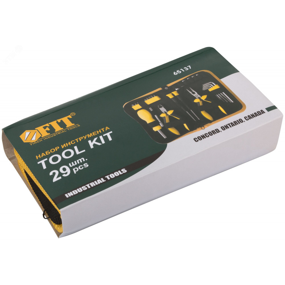 Описание Набор инструмента 29 шт(отвертки, биты, ключи HEX, пассатижи), матерчатый чехол 65137
