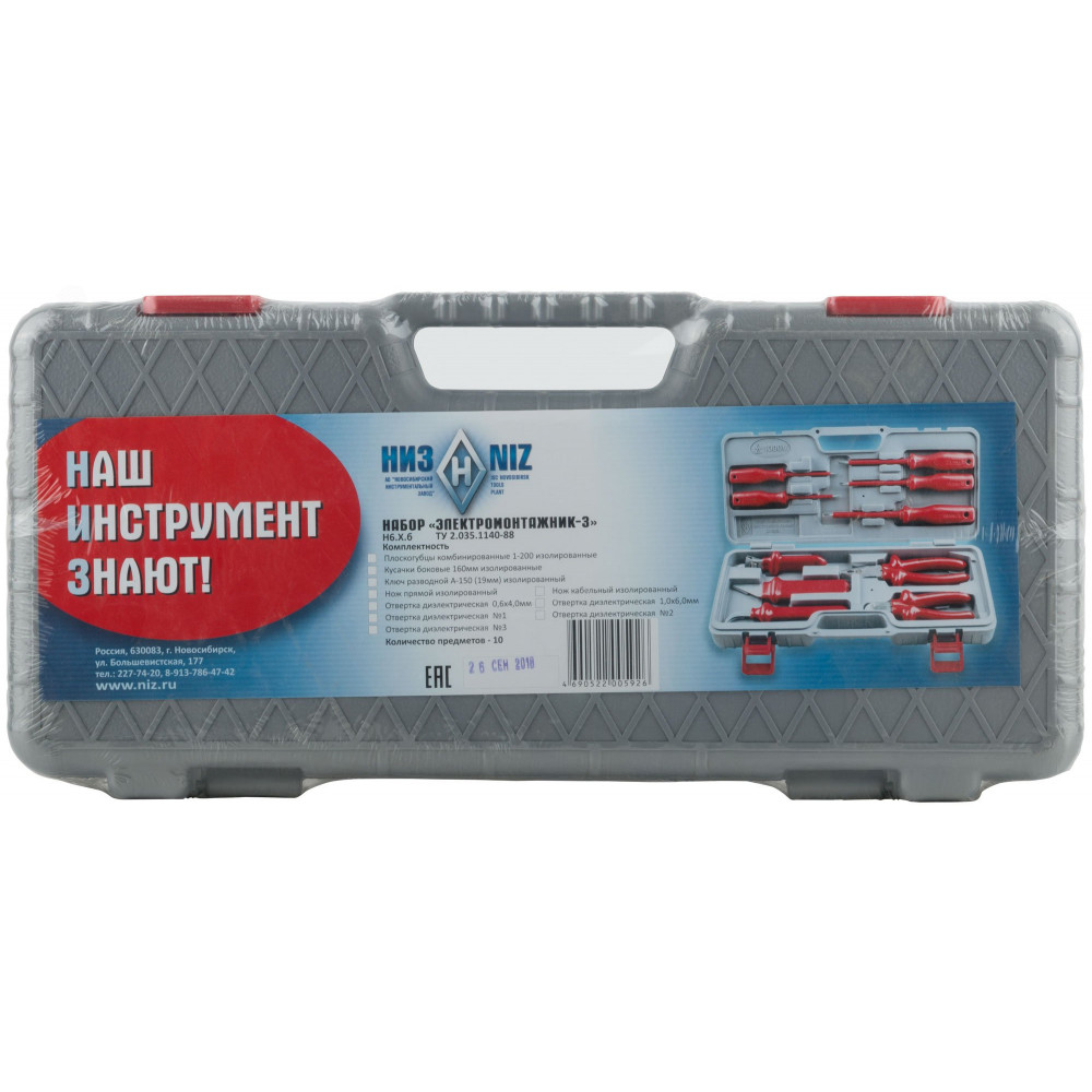 Набор инструмента диэлектрический 1000 В ""НИЗ"" ""Электромонтажник-3"" 65310, Набор инструмента