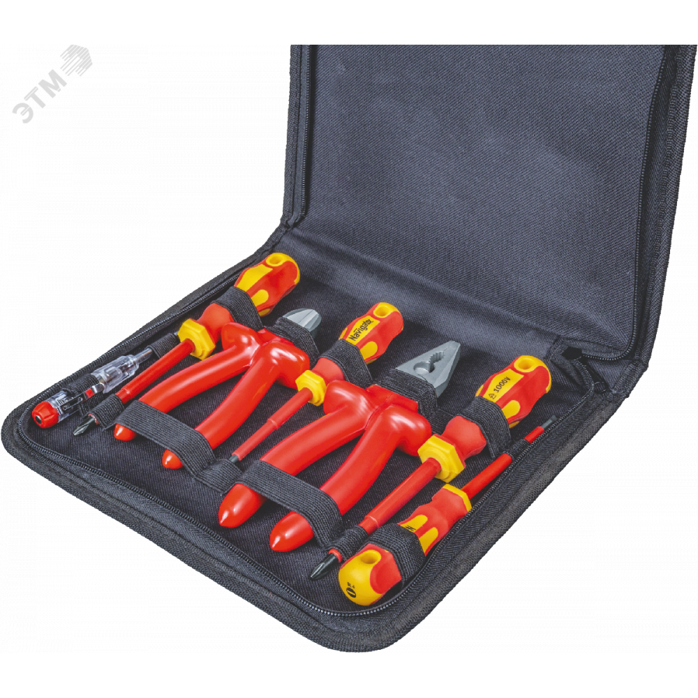 Диэлектрический инструмент Navigator предназначен для проведения широкого спектра профессиональных электротехнических и электромонтажных работ в установках с напряжением до 1000 В. Все рабочие части инструмента подвергнуты дополнительной многоступенчатой закалке, что значительно продлевает их ресурс. Многокомпонентные рукоятки с упорами обеспечивают крепкий хват, предотвращая проскальзывание руки. Прочный тканевый кофр позволяет удобно хранить и перемещать инструмент.