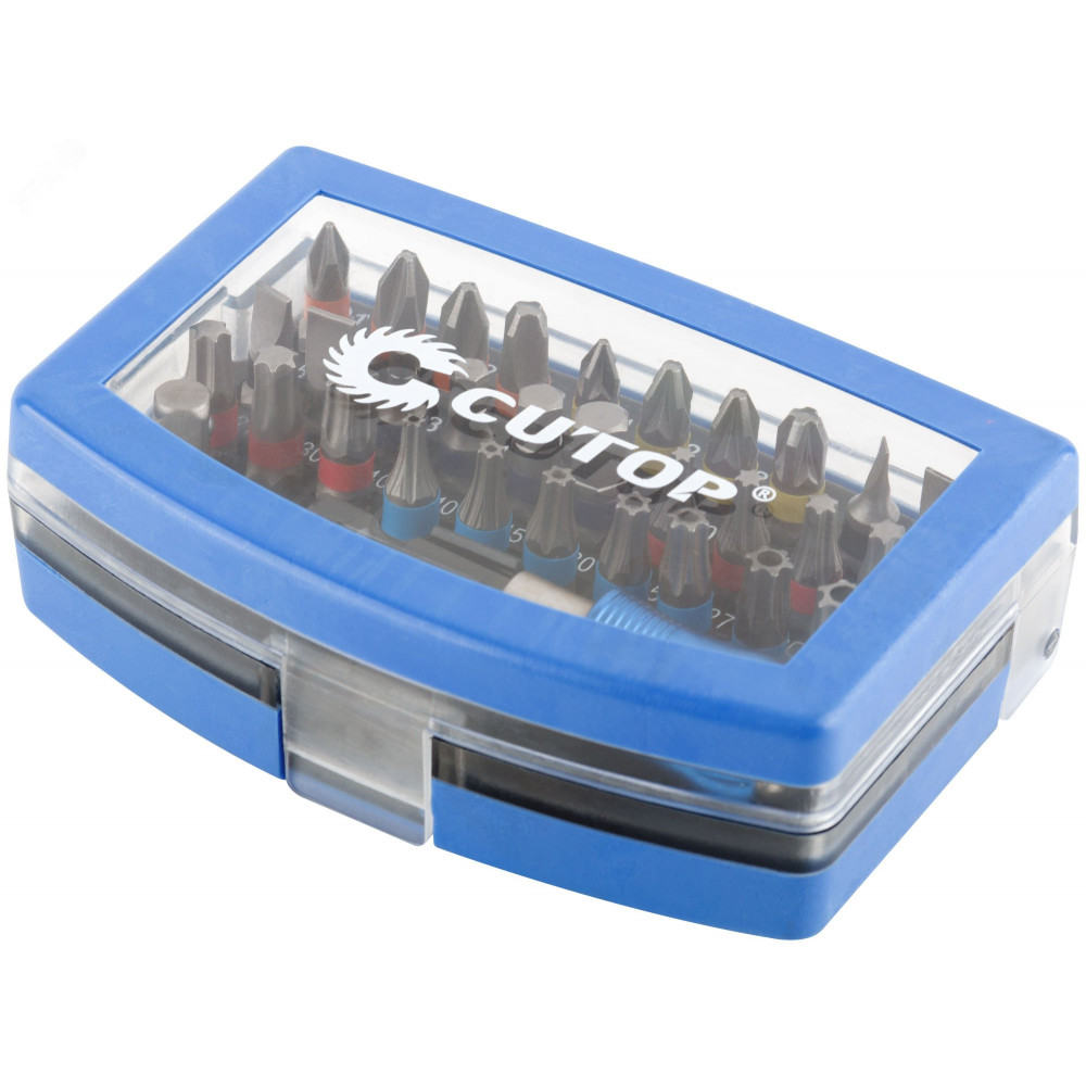 Набор бит в пластиковом боксе (32 шт.) Cutop Profi предназначен для шуруповертов и гайковертов. Биты произведены по технологии CUTOP, изготавливаются из тайваньской стали высшего качества марки S2. Ребра биты производятся с помощью холодной штамповки в соответствии с точной спецификацией. В наборе 32 предмета. Намагниченный шлиц обеспечивает удобство в работе, облегчает позиционирование в шлице. Антискользящие риски предотвращают выскальзывание оснастки, препятствуя повреждению биты и крепежа. Шлицы биты проходят специальный процесс закалки при температурах до 870 градусов, что позволяет получить насадки твердостью 60 HRC с увеличенным сроком службы. Ресурс биты — от 2000 шт. саморезов (по данным собственных испытаний, произведенных на саморезах по дереву 3,5х41 мм).