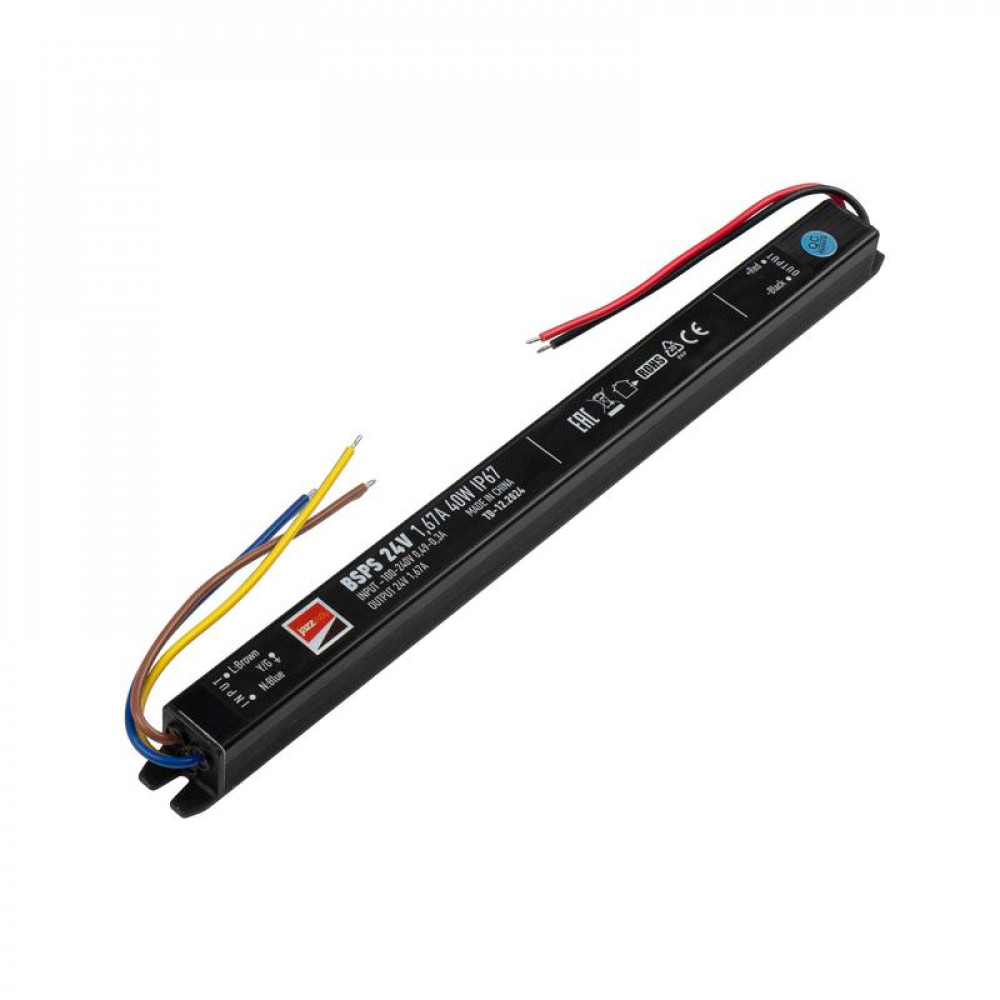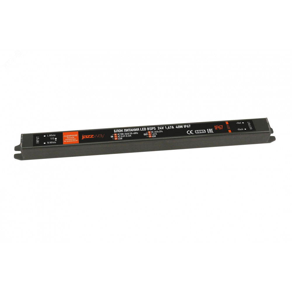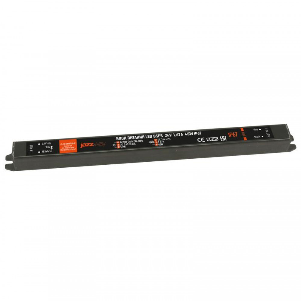Описание Блок питания для светодиодной ленты 40Вт 1.67А 24В IP67 BSPS влагозащ. метал. Pro JazzWay 5018495