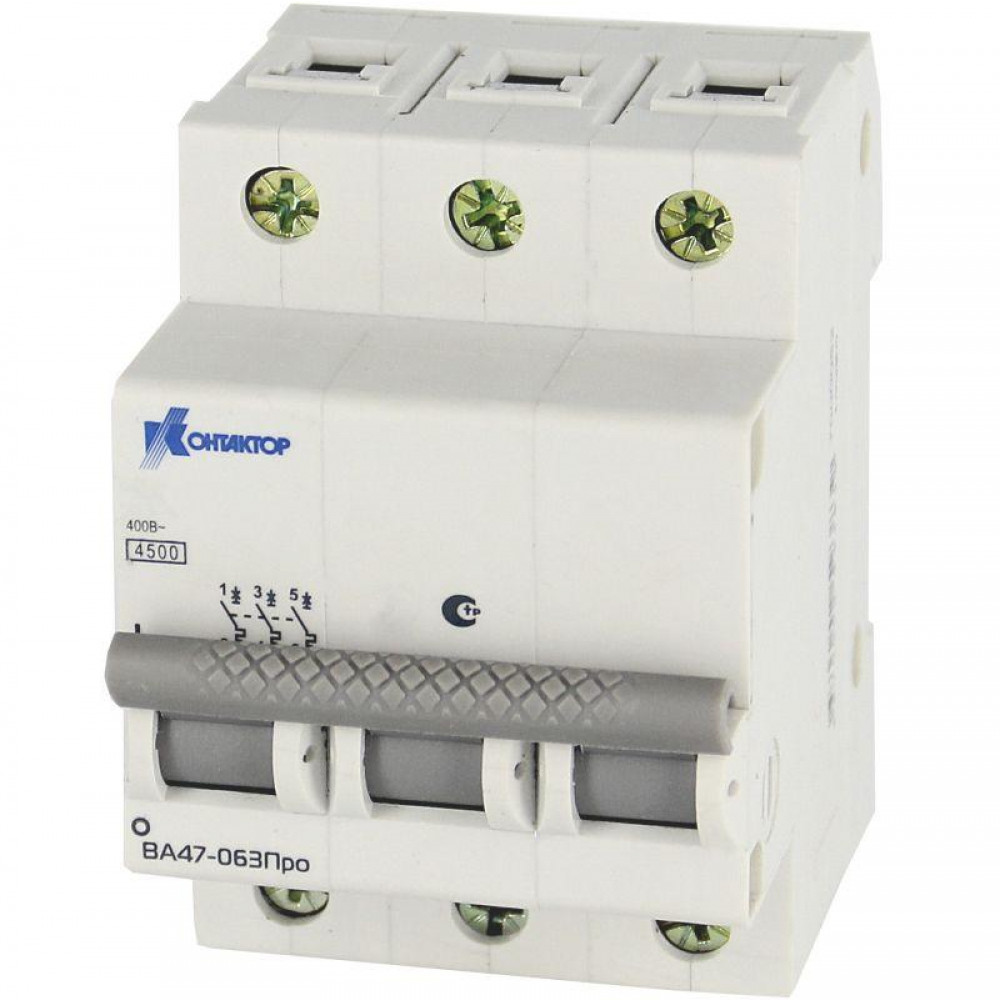 Выключатель автоматический модульный 3п B 10А 4.5кА ВА47-063 Контактор 7000045, Выключатель автоматический модульный
