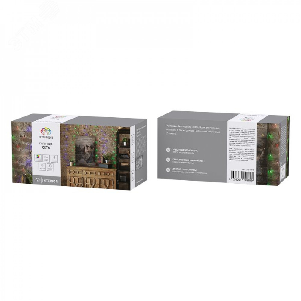 Описание Гирлянда светодиодная "Сеть" 1х1.5м 96LED мультиколор 12Вт 220-240В IP20 с контроллером 8 режимов провод ПВХ прозр. Neon-Night 215-119-6