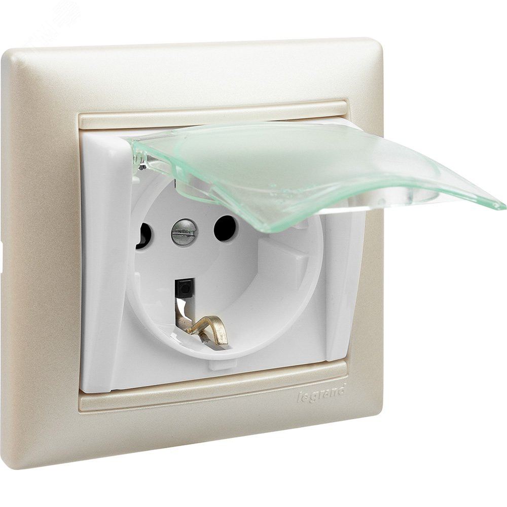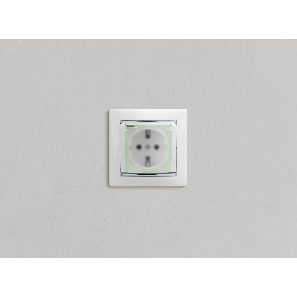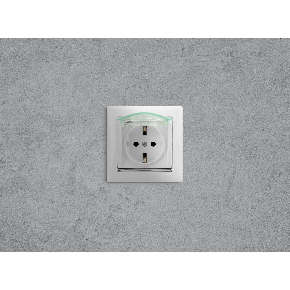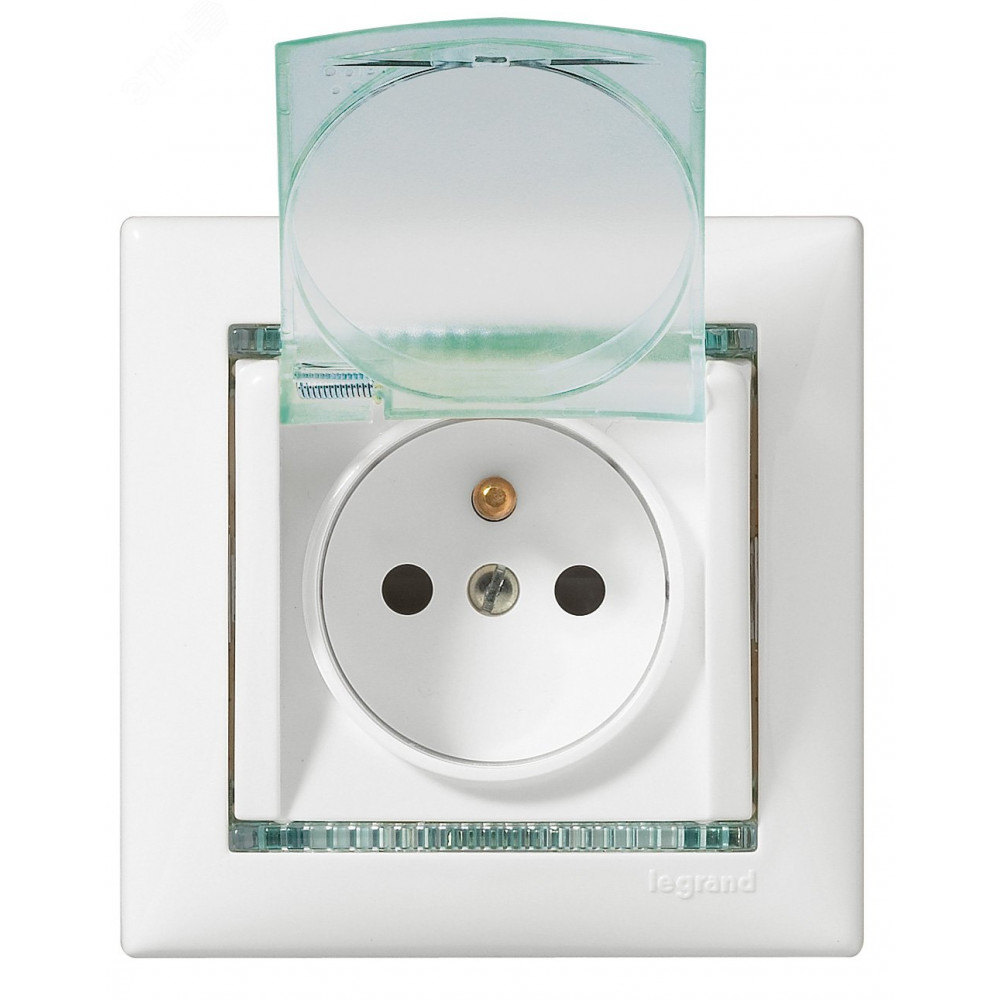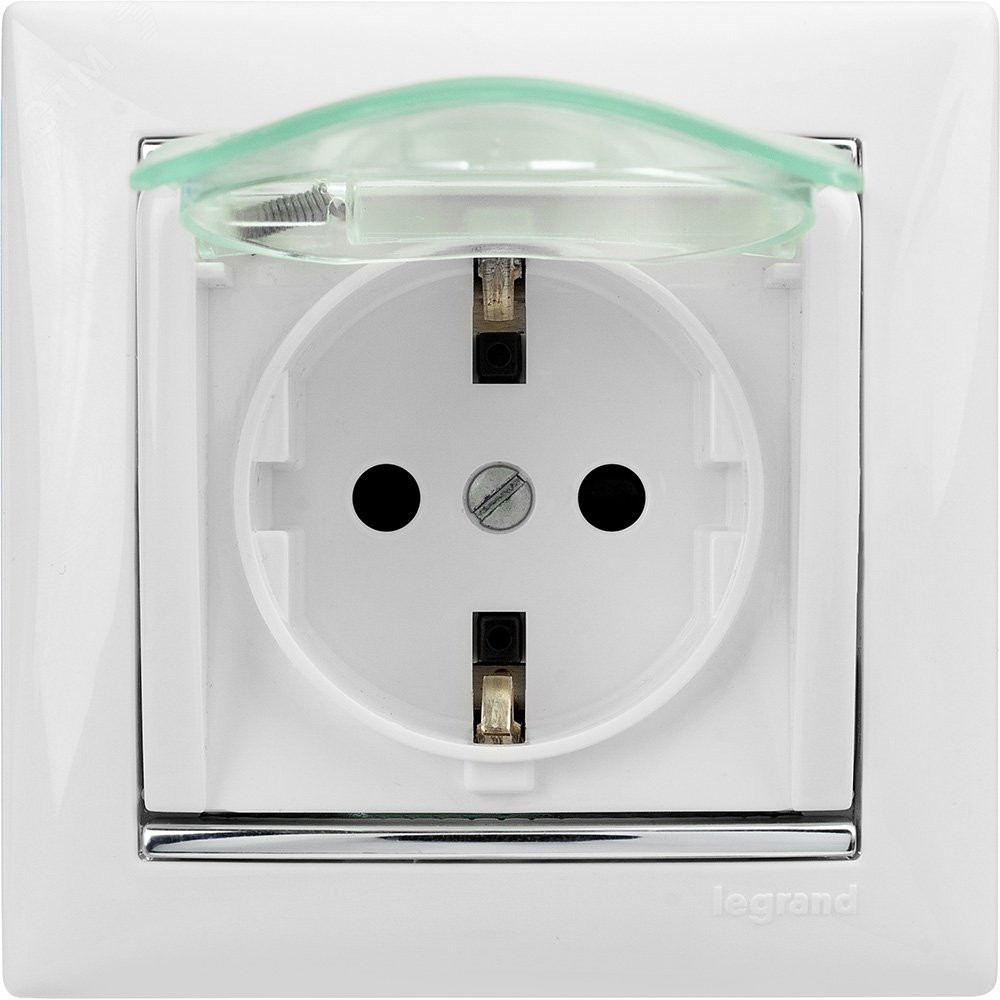 Описание VALENA Розетка с заземлением с крышкой со шторками белая 774220