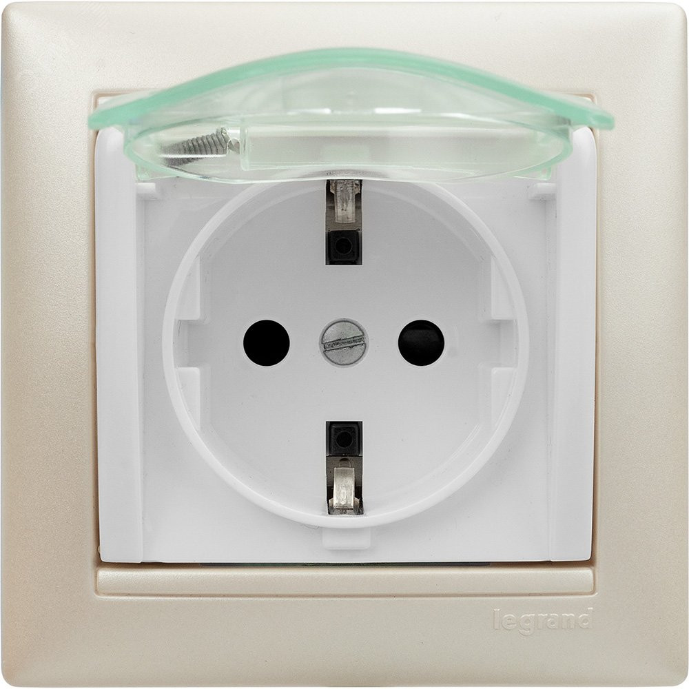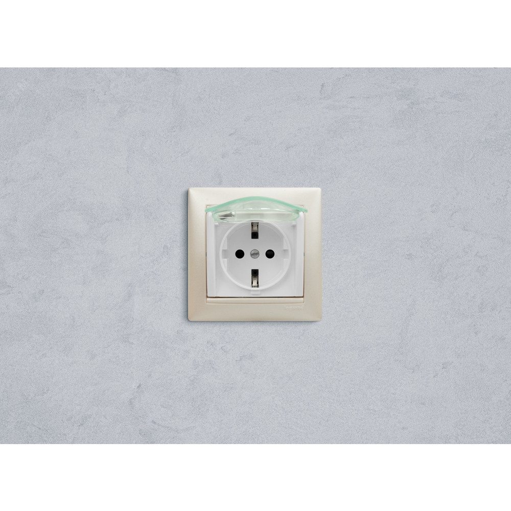 VALENA Розетка с заземлением с крышкой со шторками белая 774220, Розетка скрытого монтажа