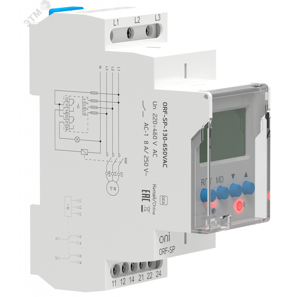 Описание Реле фаз ORF-SP 3ф. 2 конт. 130-650В AC ONI ORF-SP-130-650VAC