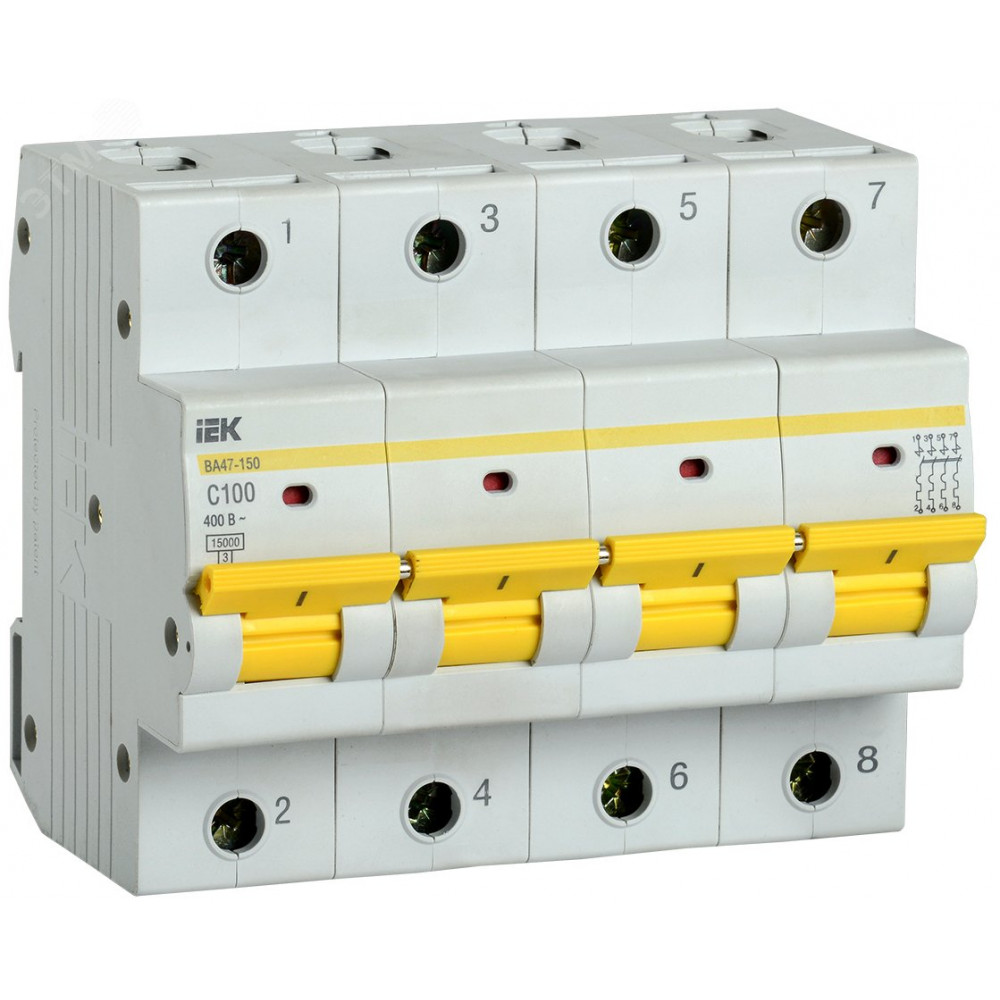 Выключатель автоматический ВА47-150 4Р 100А 15кА характеристика C MVA50-4-100-C, Выключатель автоматический модульный