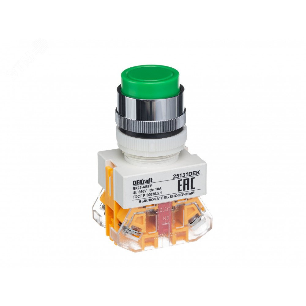 Выключатель кнопочный ВK-22 с фиксацией ABFP диам. 22мм зеленый 220В 25131DEK, Кнопка