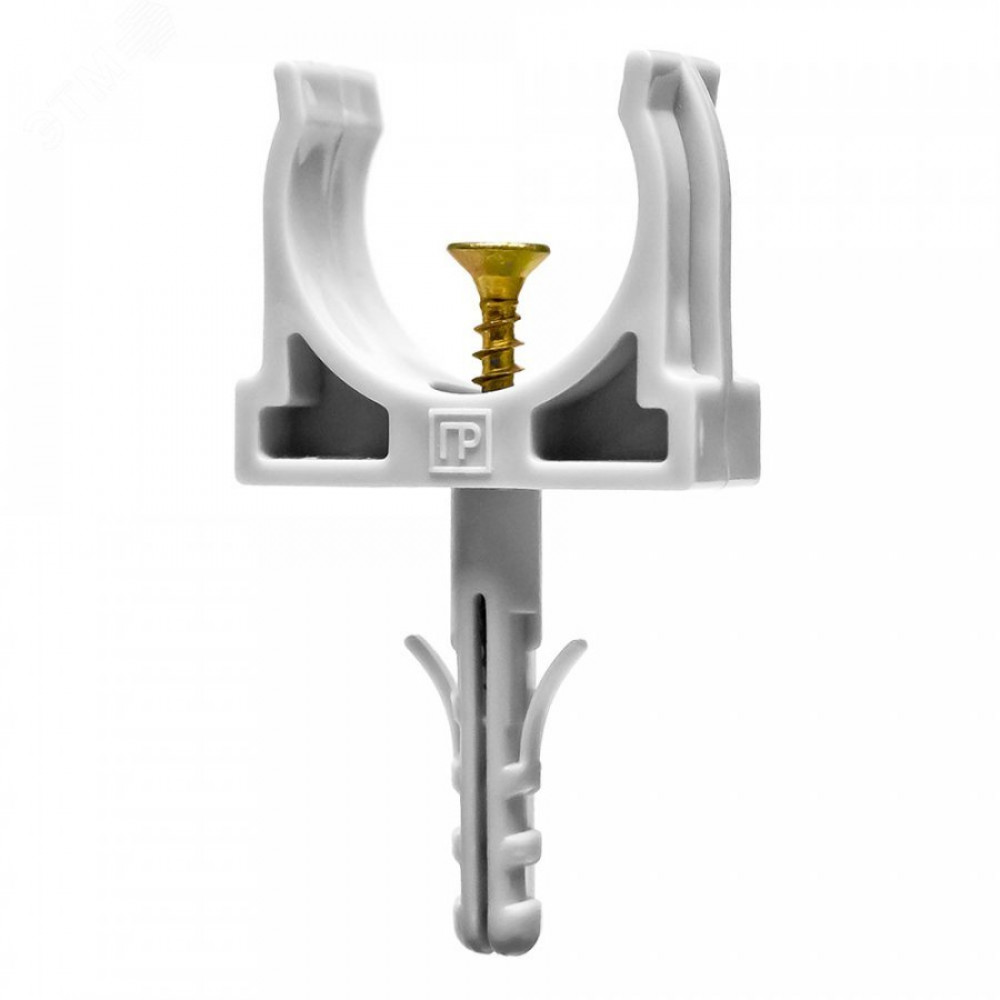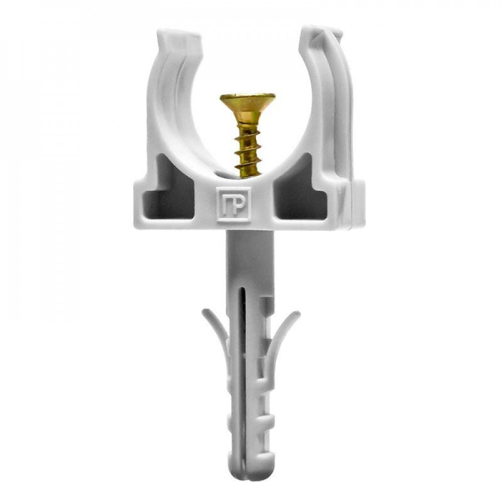 Крепеж-клипса с дюбелем и саморезом серая д20 (100шт/1200шт уп/кор) PR13.0216, Аксессуар к кабеленесущей системе