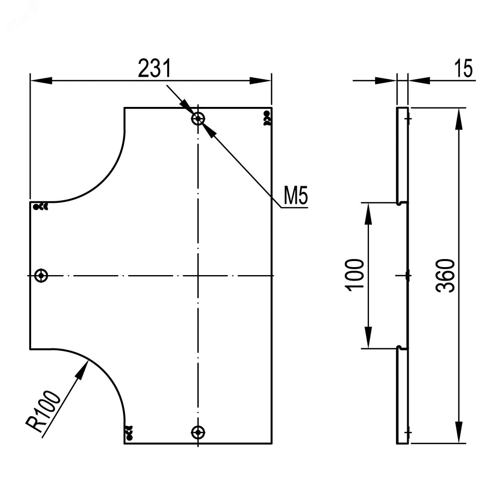 Крышка на ответвитель DPT Т-образный горизонтальный осн.100 в комплекте с метизами и пластинами PTCE 38042K, Аксессуар к кабеленесущей системе